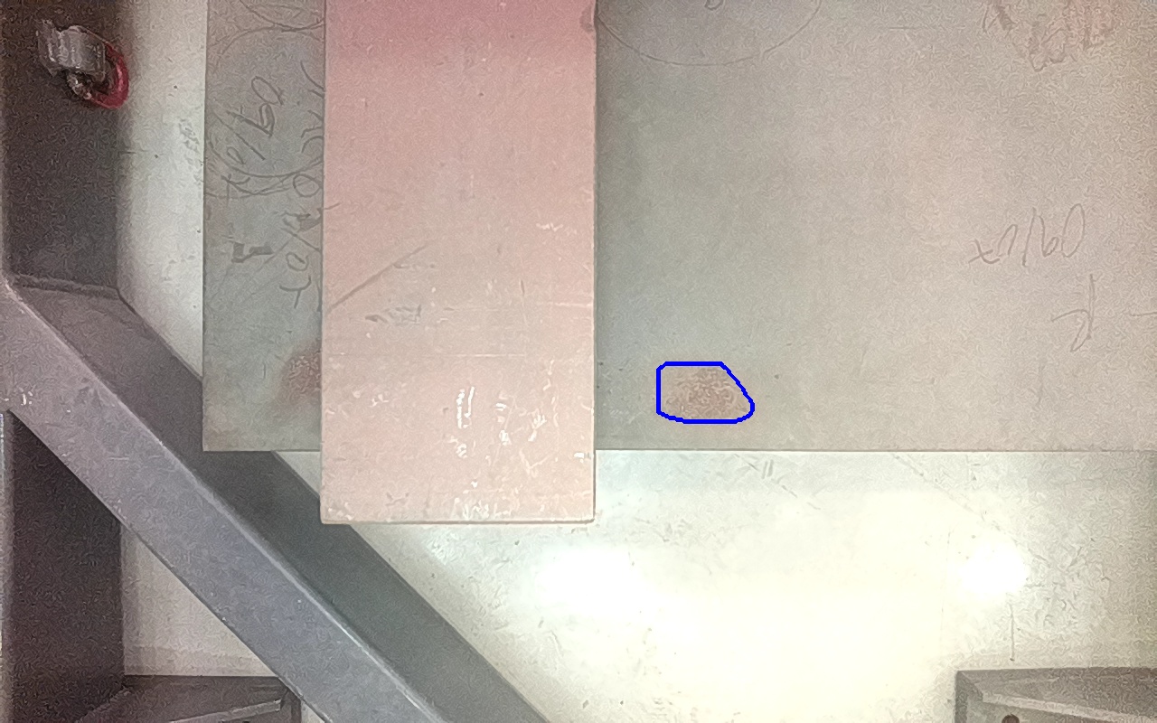 Rayaduras o zonas de metal expuestas con productos de óxido débilmente adherido. |