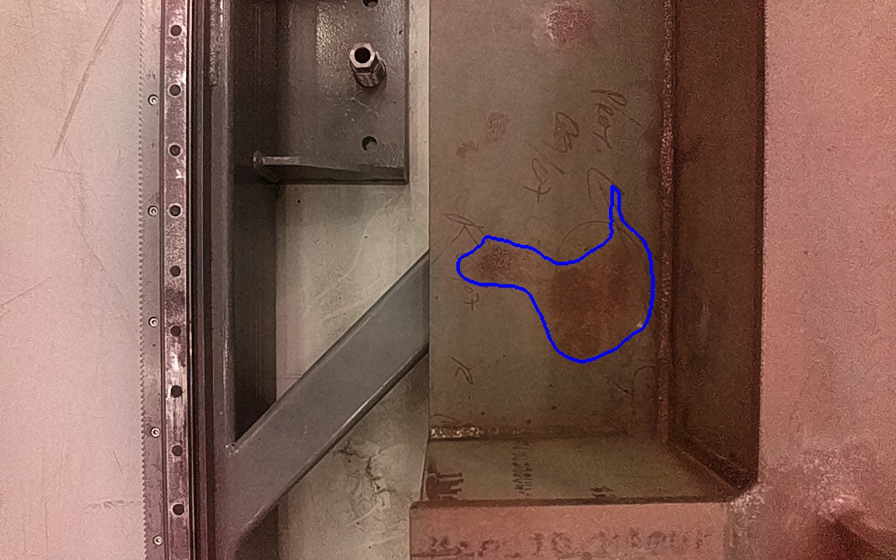 Rayaduras o zonas de metal expuestas con productos de óxido débilmente adherido. |