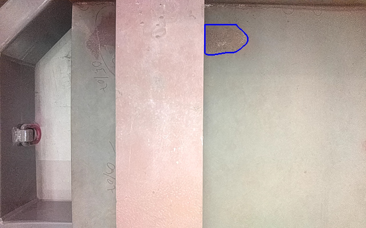 Rayaduras o zonas de metal expuestas con productos de óxido débilmente adherido. |