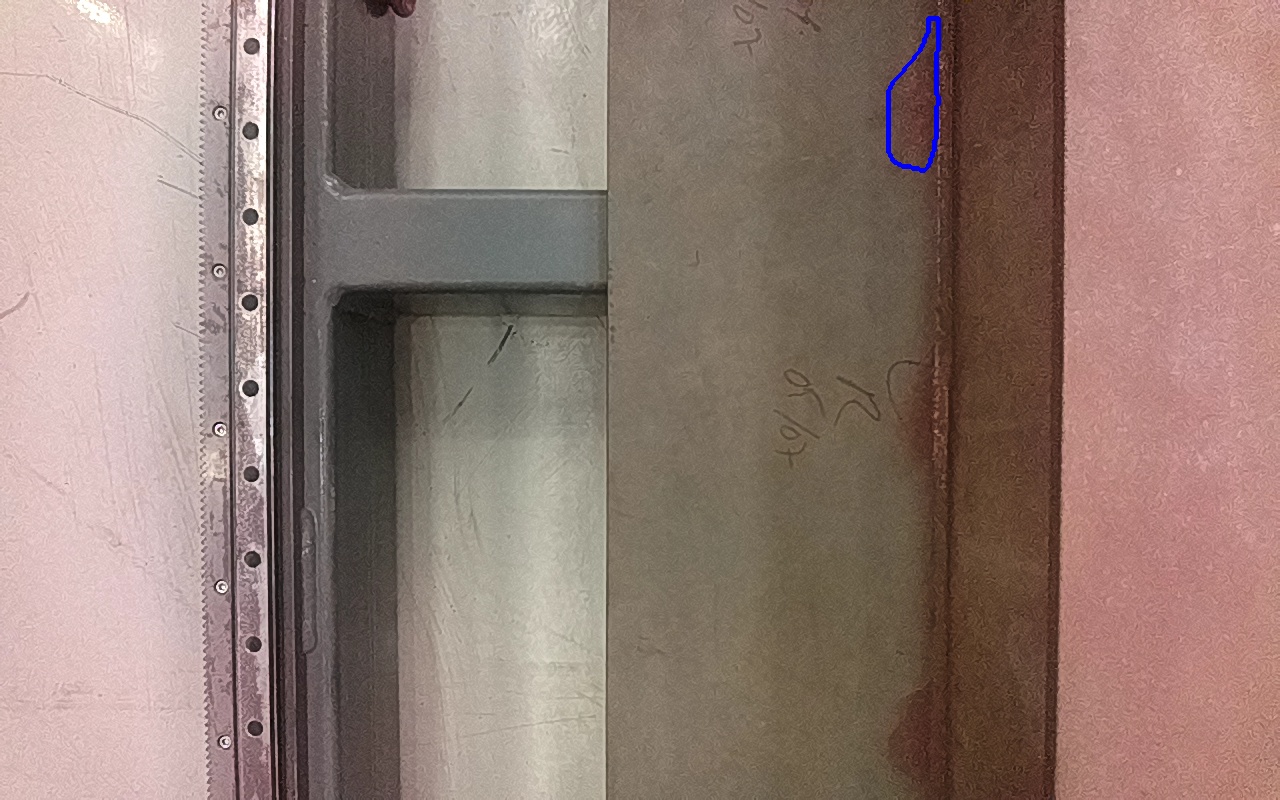 Rayaduras o zonas de metal expuestas con productos de óxido débilmente adherido. |