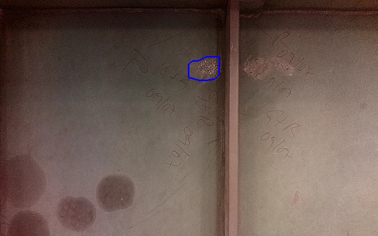 Rayaduras o zonas de metal expuestas con productos de óxido débilmente adherido. |