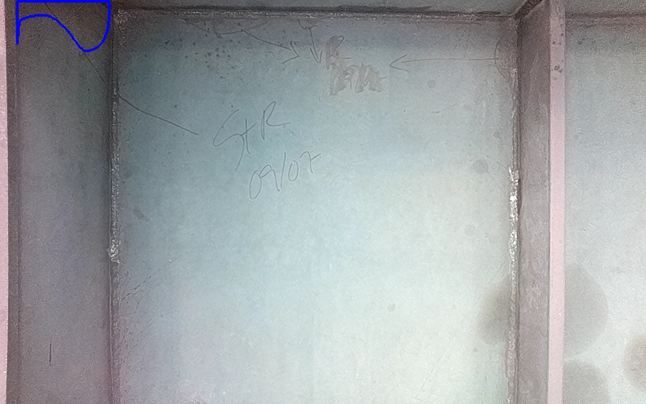 Rayaduras o zonas de metal expuestas con productos de óxido débilmente adherido. |