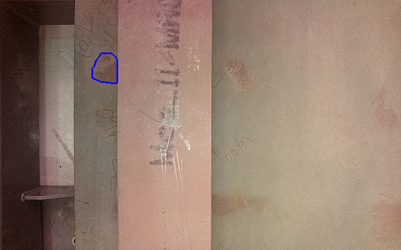 Rayaduras o zonas de metal expuestas con productos de óxido débilmente adherido. |