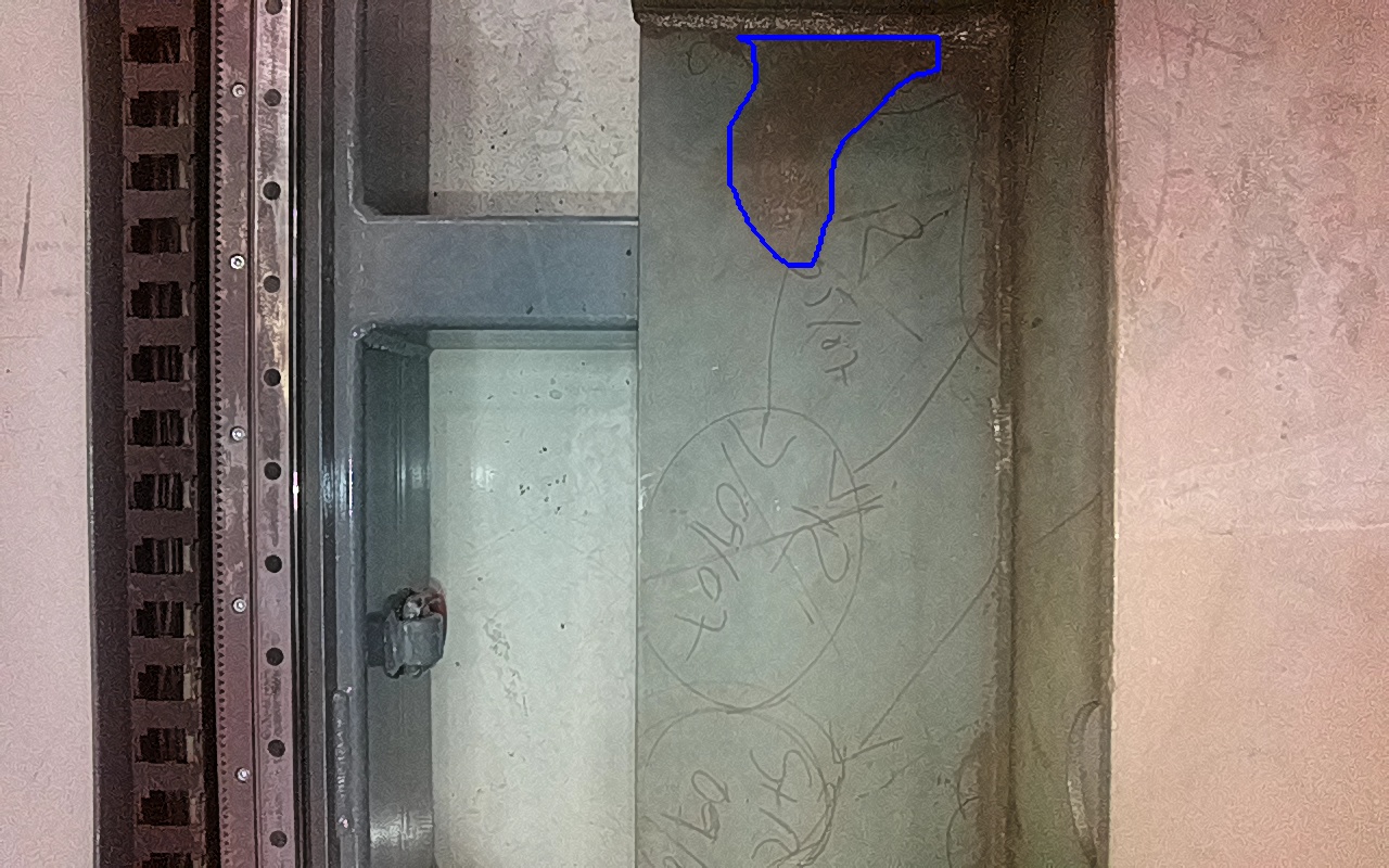 Residuos metálicos adheridos a la superficie, provenientes de operaciones adyacentes de fabricación y montaje. |