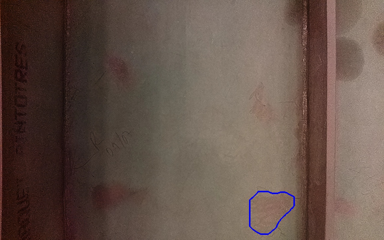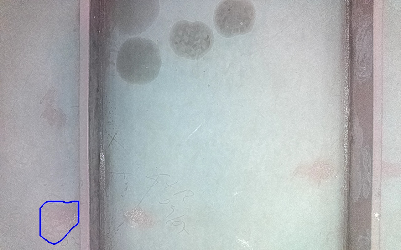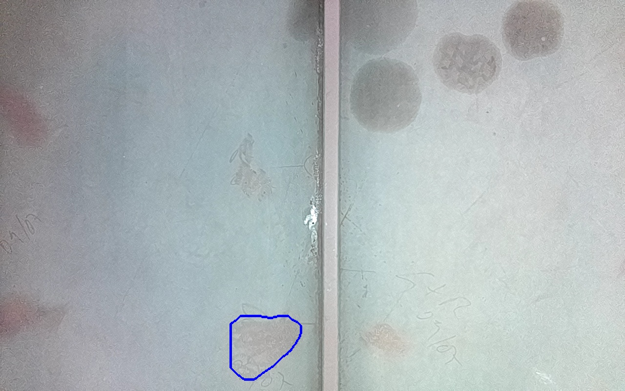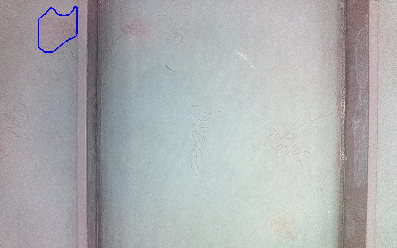 Rayaduras o zonas de metal expuestas con productos de óxido débilmente adherido.
