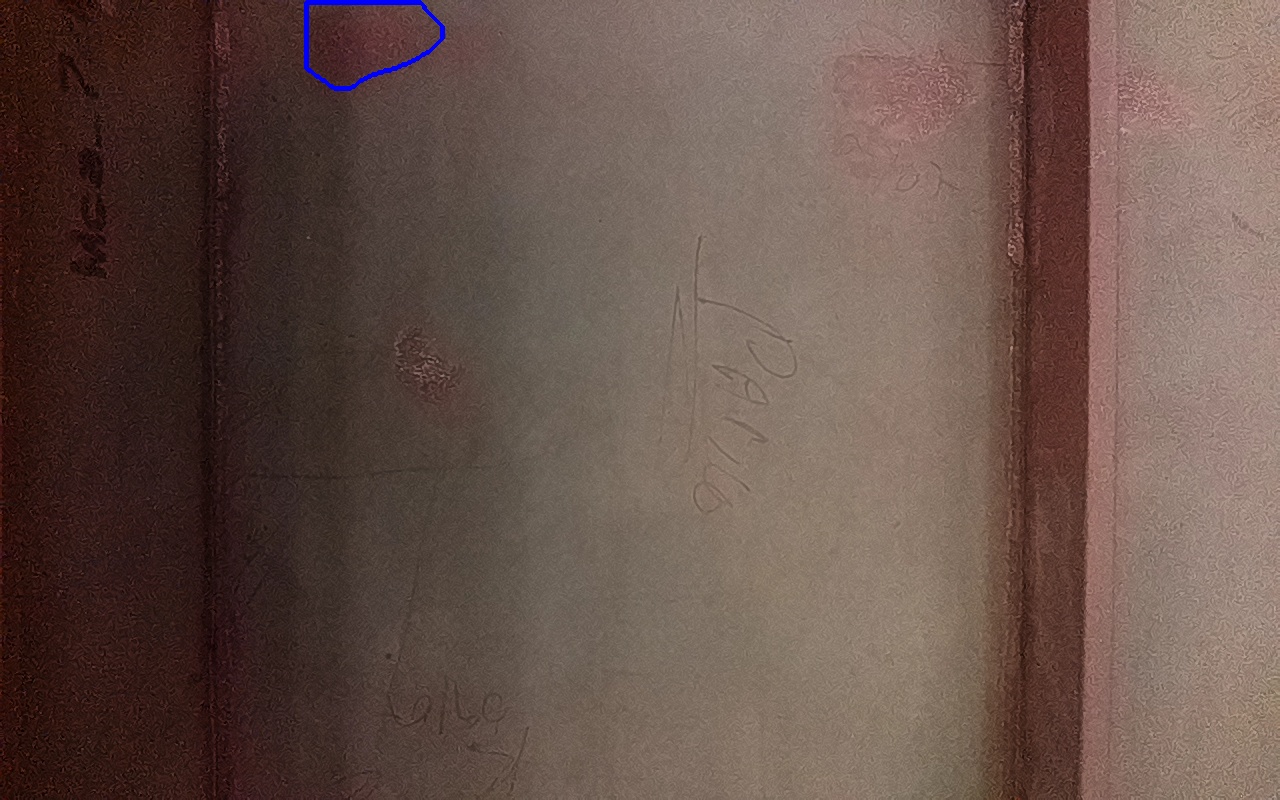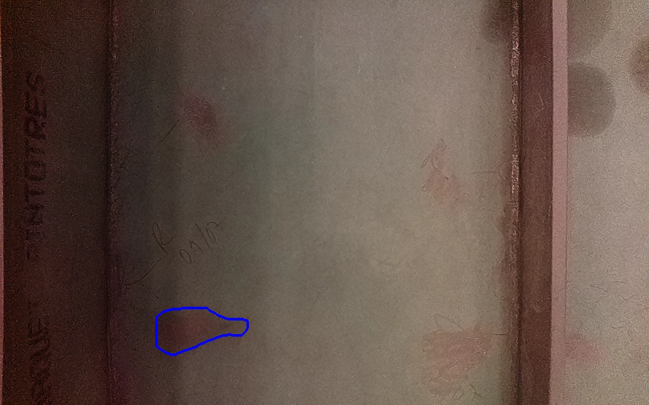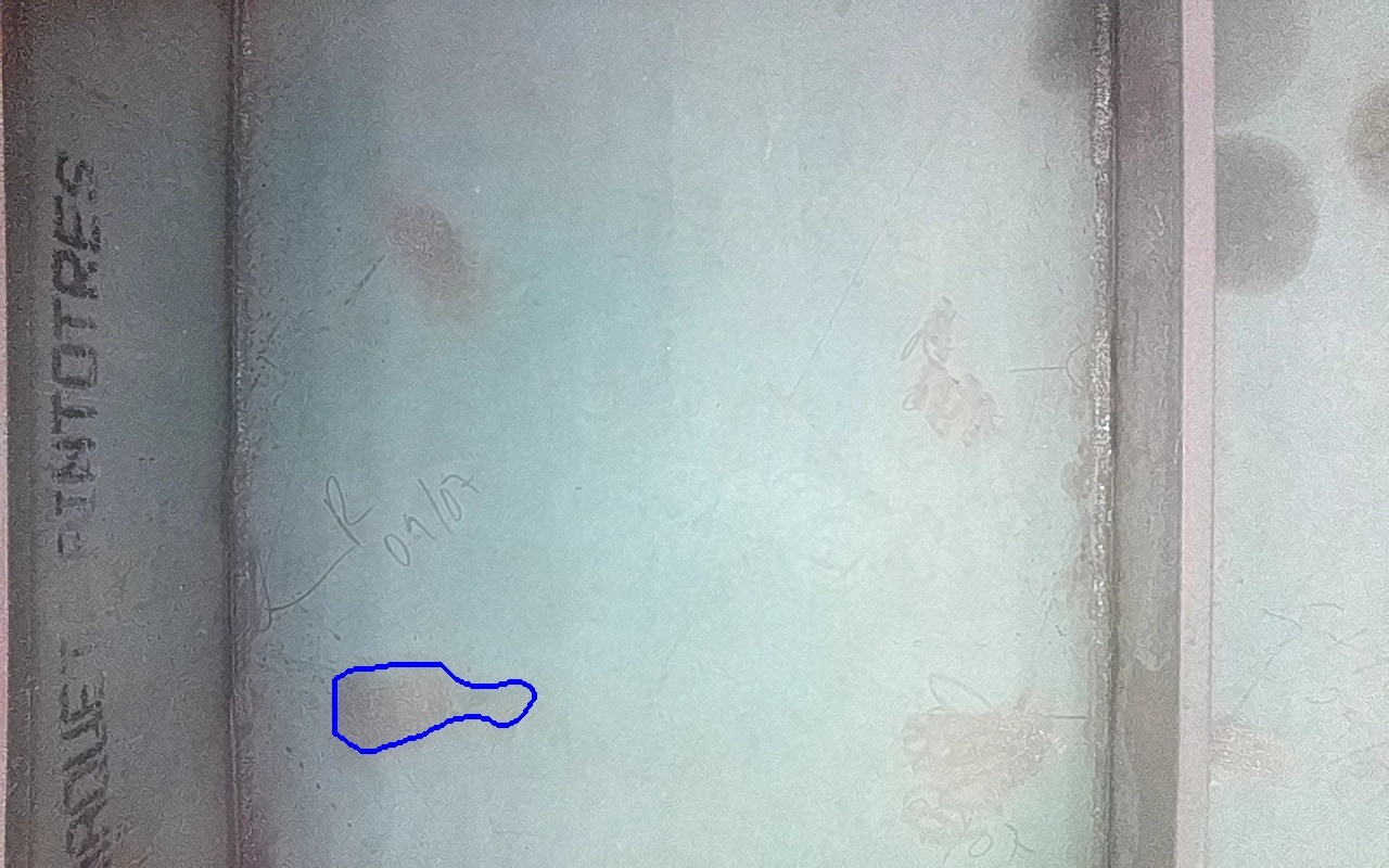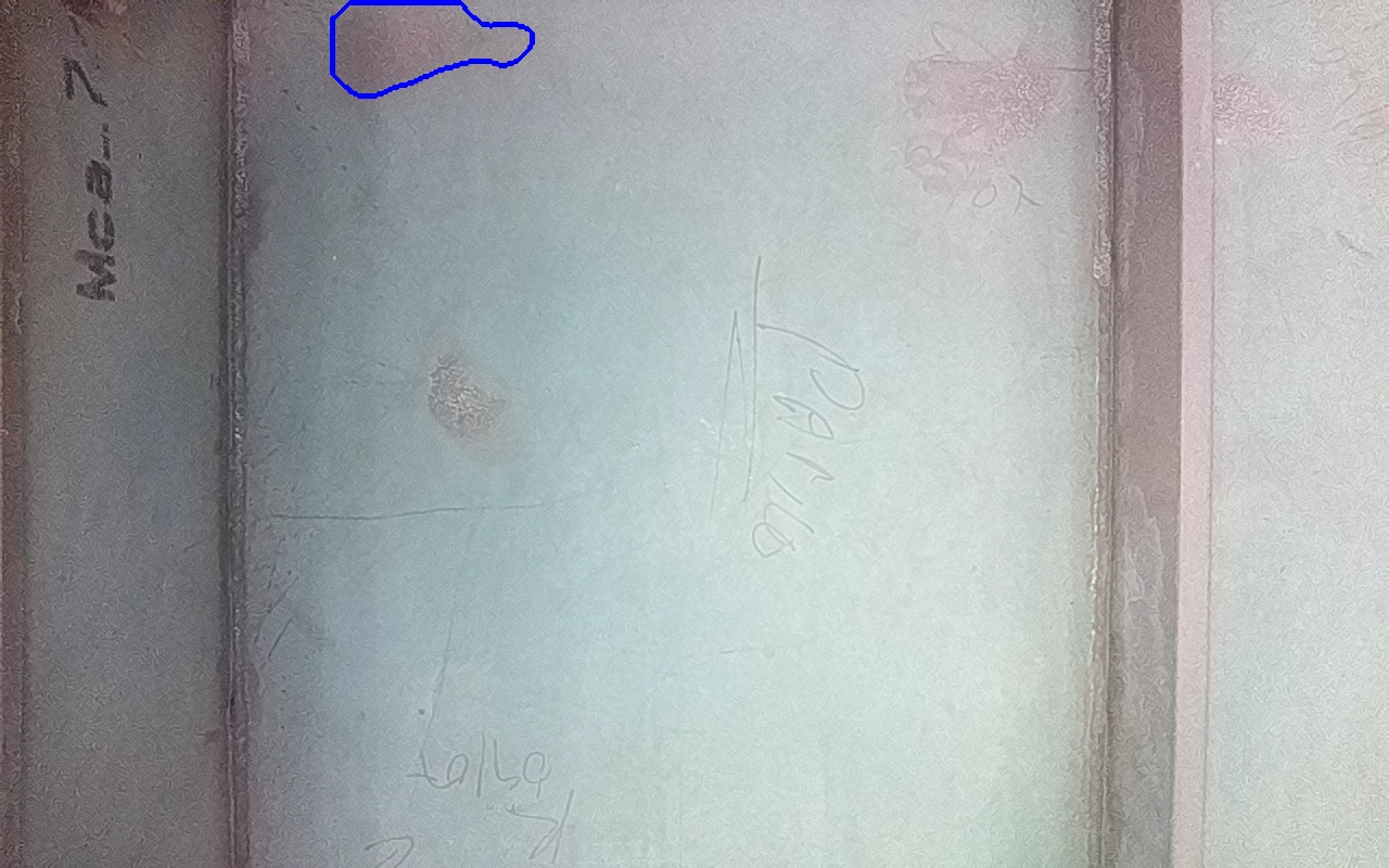 Rayaduras o zonas de metal expuestas con productos de óxido débilmente adherido.
