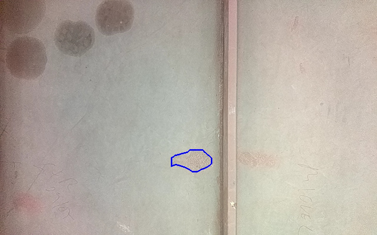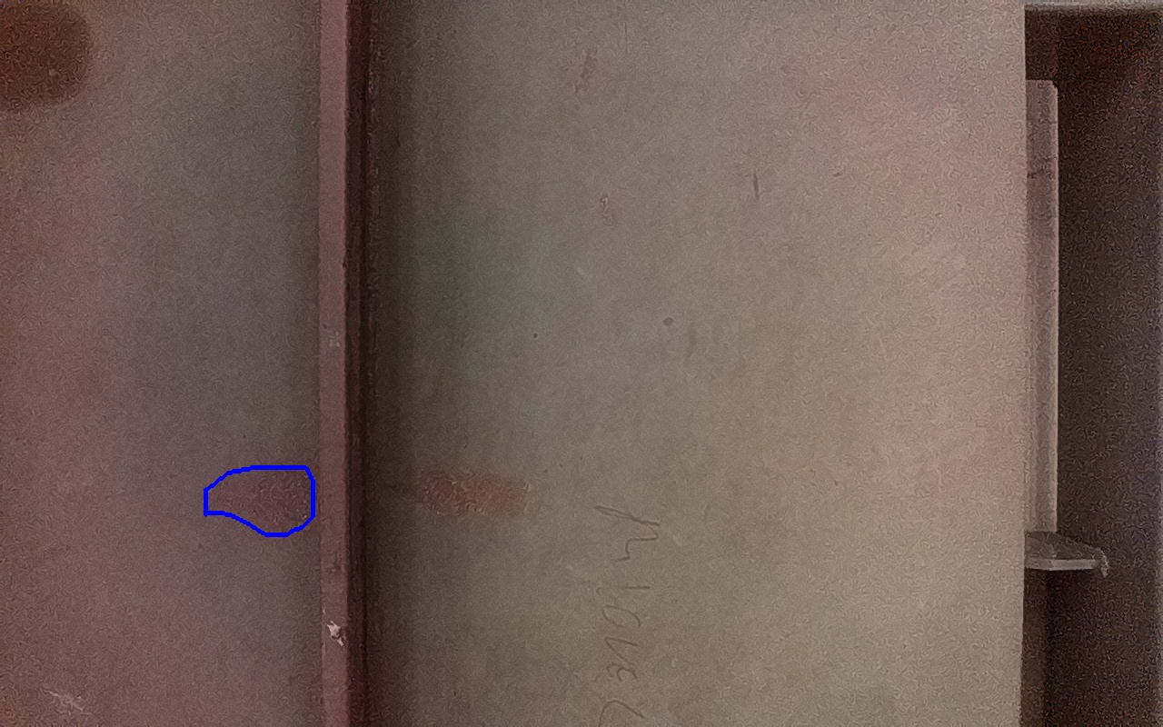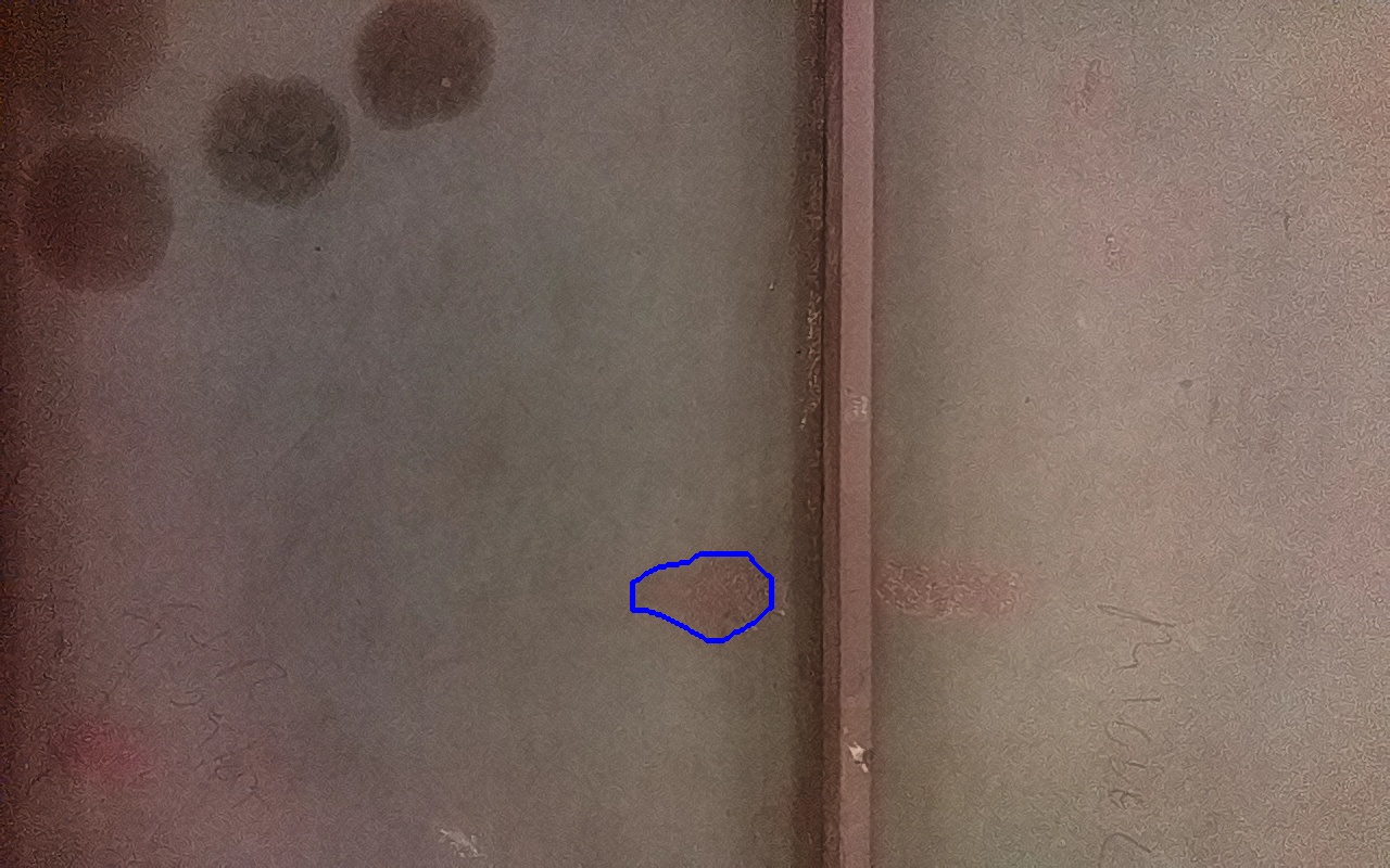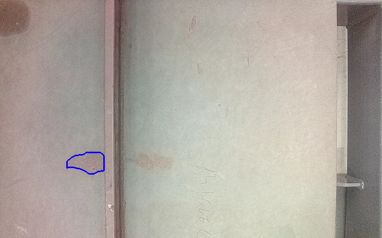 Rayaduras o zonas de metal expuestas con productos de óxido débilmente adherido.
