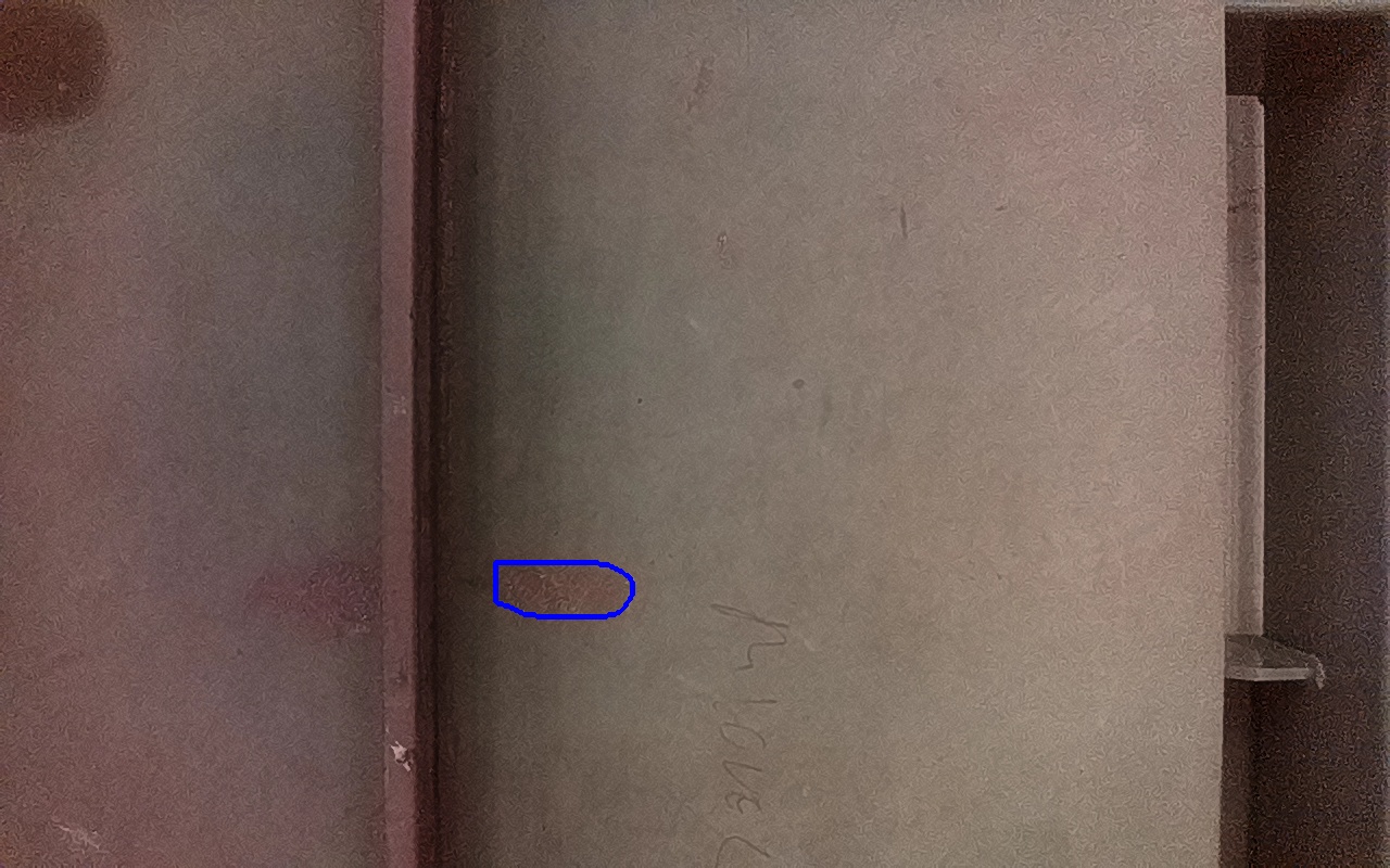 Rayaduras o zonas de metal expuestas con productos de óxido débilmente adherido.