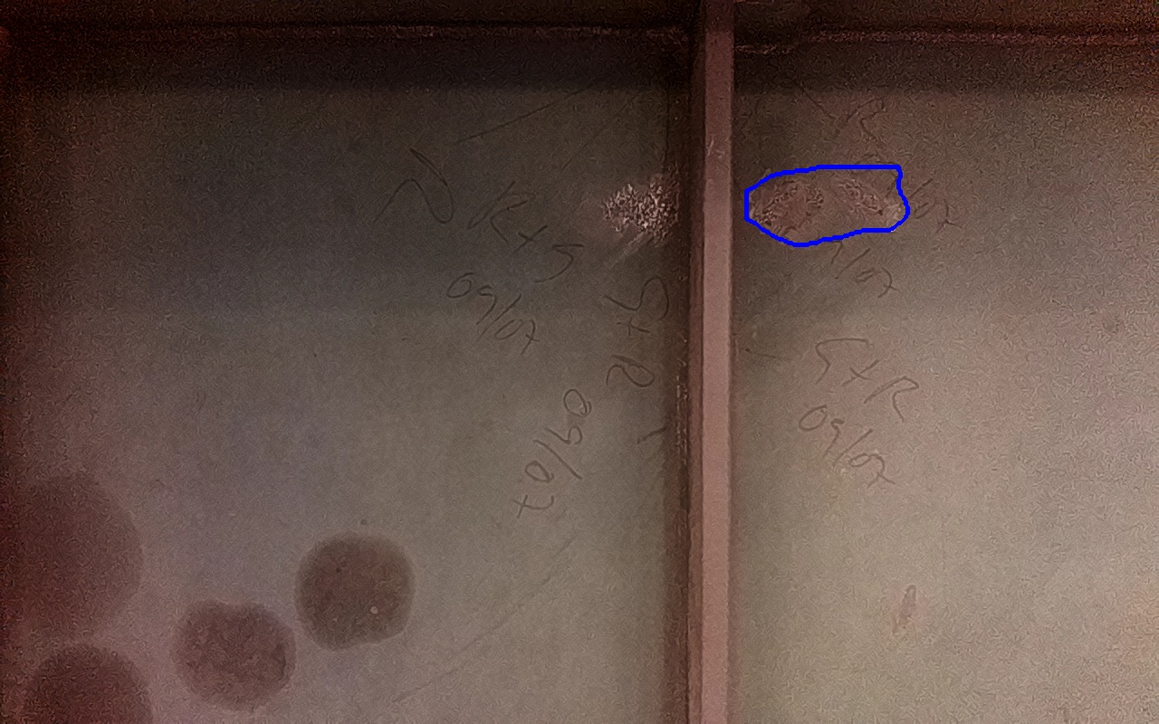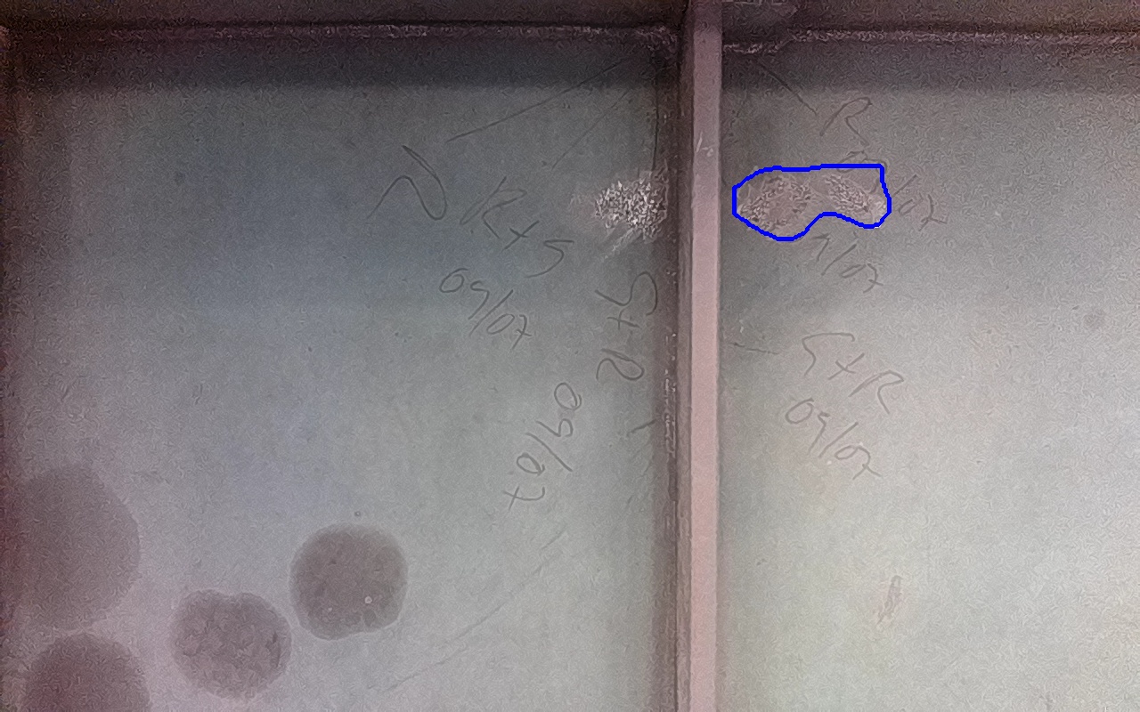 Rayaduras o zonas de metal expuestas con productos de óxido débilmente adherido.