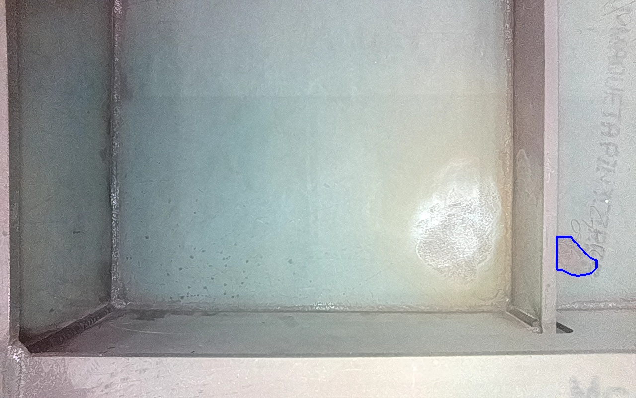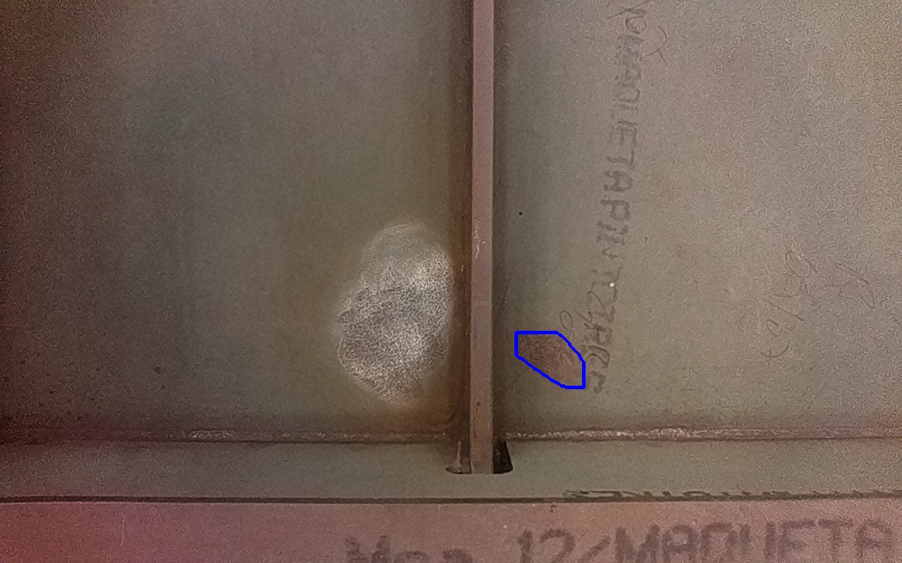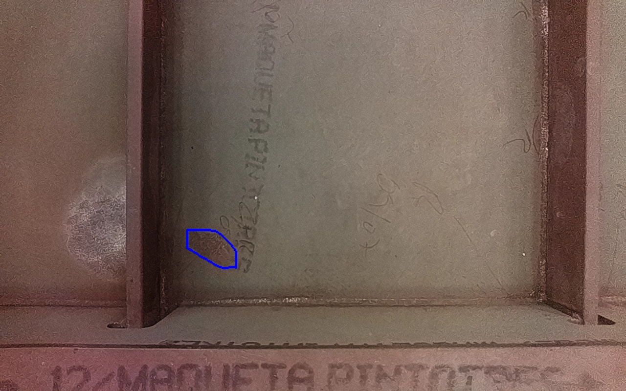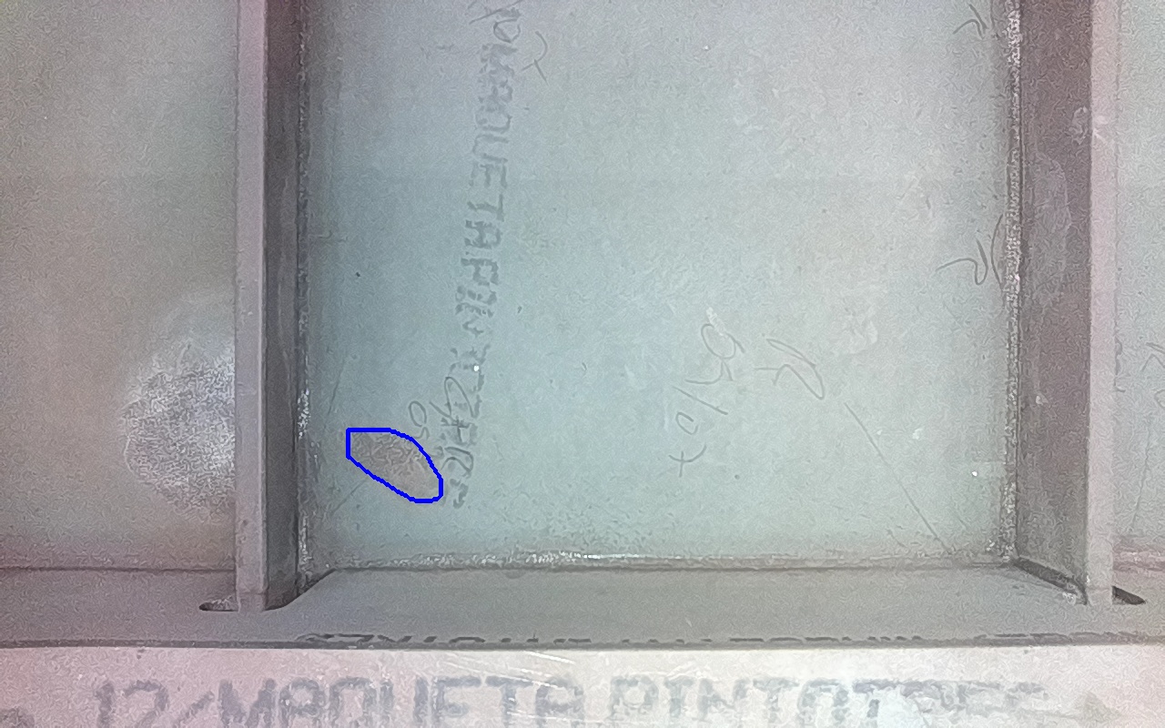 Rayaduras o zonas de metal expuestas con productos de óxido débilmente adherido.