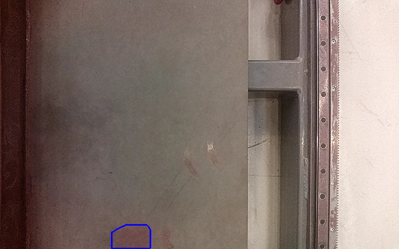 Rayaduras o zonas de metal expuestas con productos de óxido débilmente adherido.