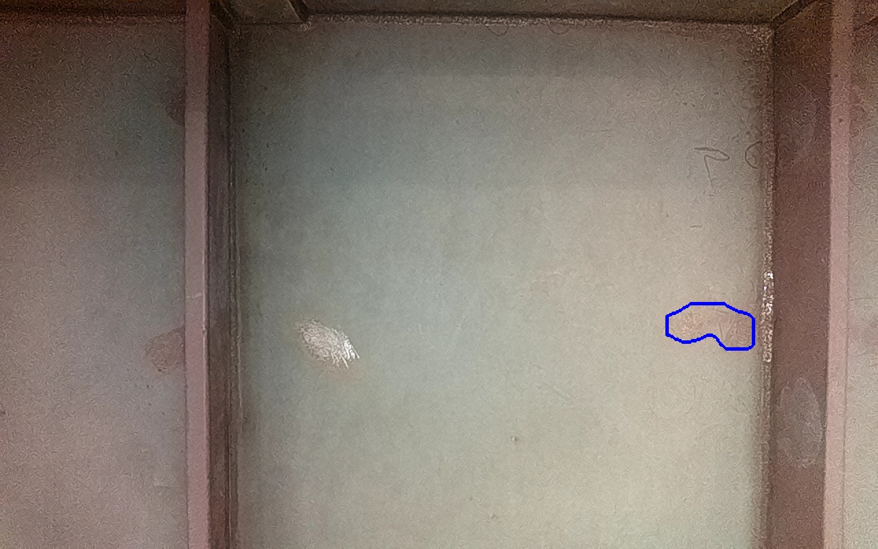 Rayaduras o zonas de metal expuestas con productos de óxido débilmente adherido.