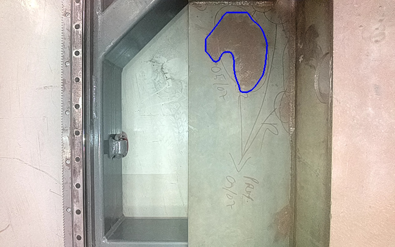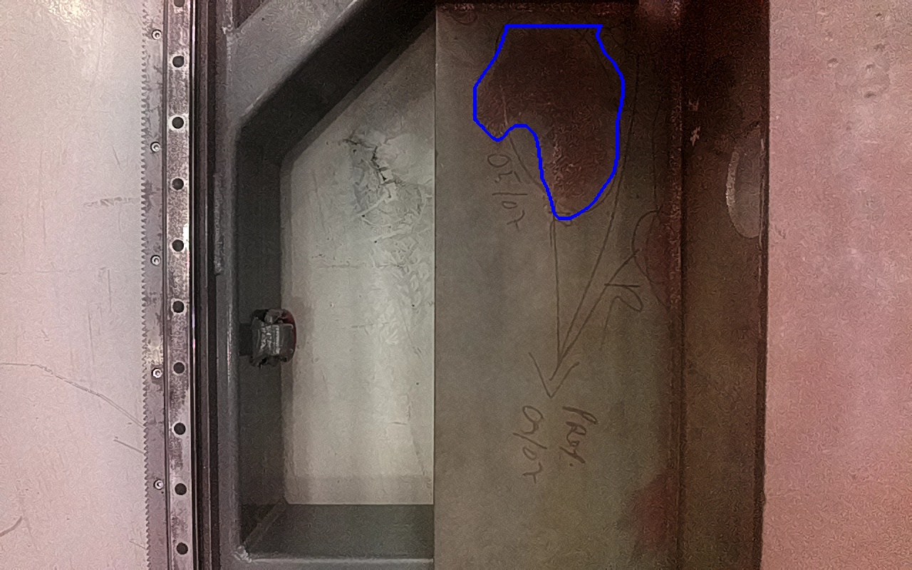 Rayaduras, marcas, daños por impacto, abrasión o zonas de metal expuestas con apariencia metálica y libre de productos de óxido o con trazas firmemente adheridas. |