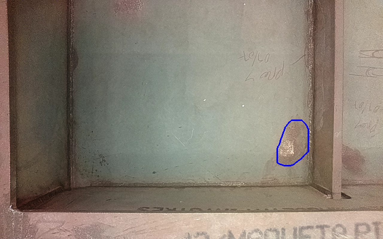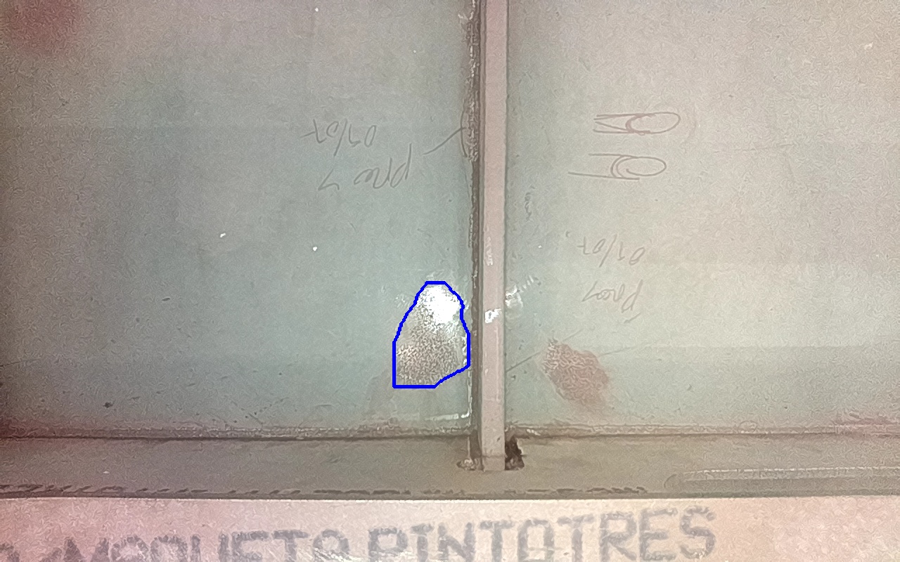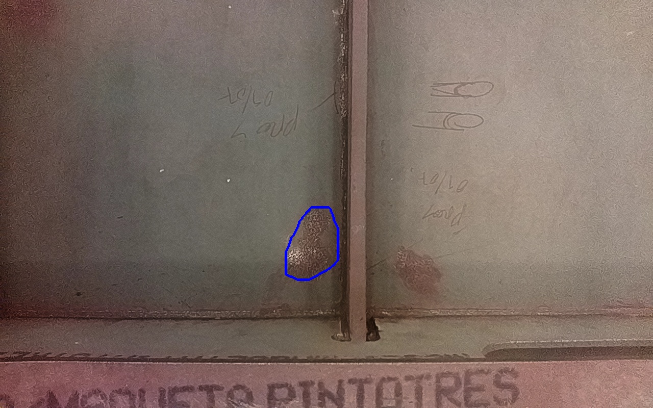 Rayaduras o zonas de metal expuestas con productos de óxido débilmente adherido.