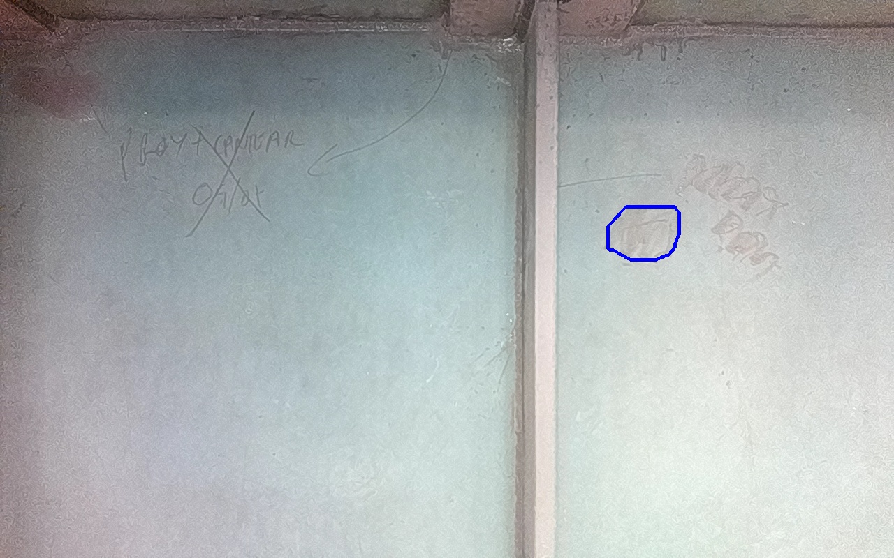 Rayaduras o zonas de metal expuestas con productos de óxido débilmente adherido.