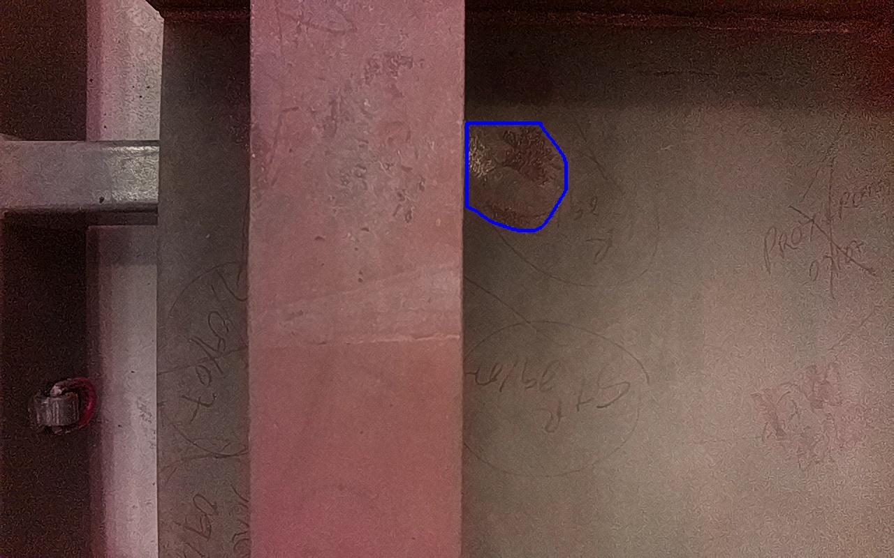 Rayaduras o zonas de metal expuestas con productos de óxido débilmente adherido.
