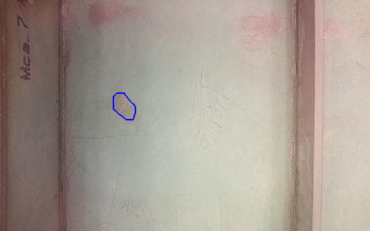Rayaduras o zonas de metal expuestas con productos de óxido débilmente adherido.