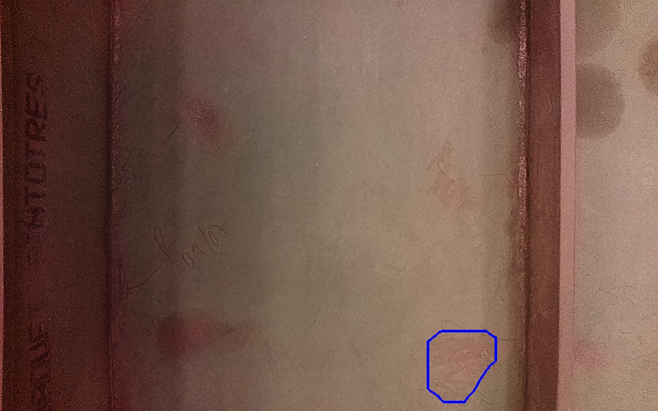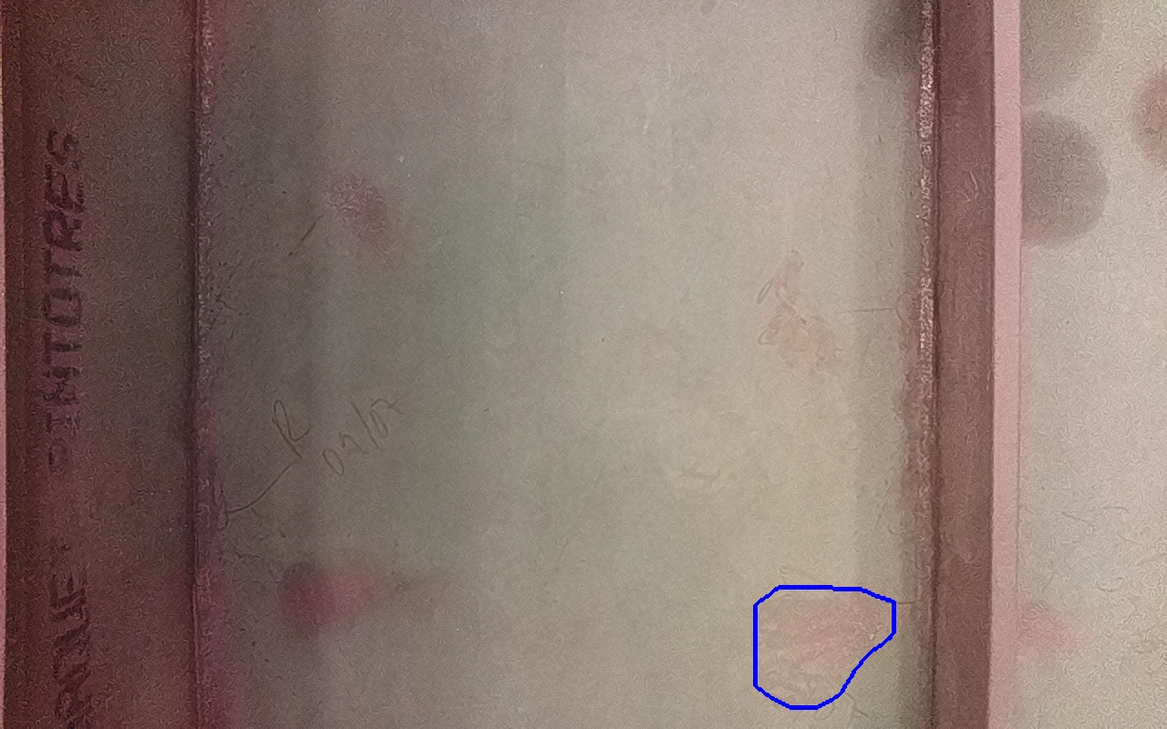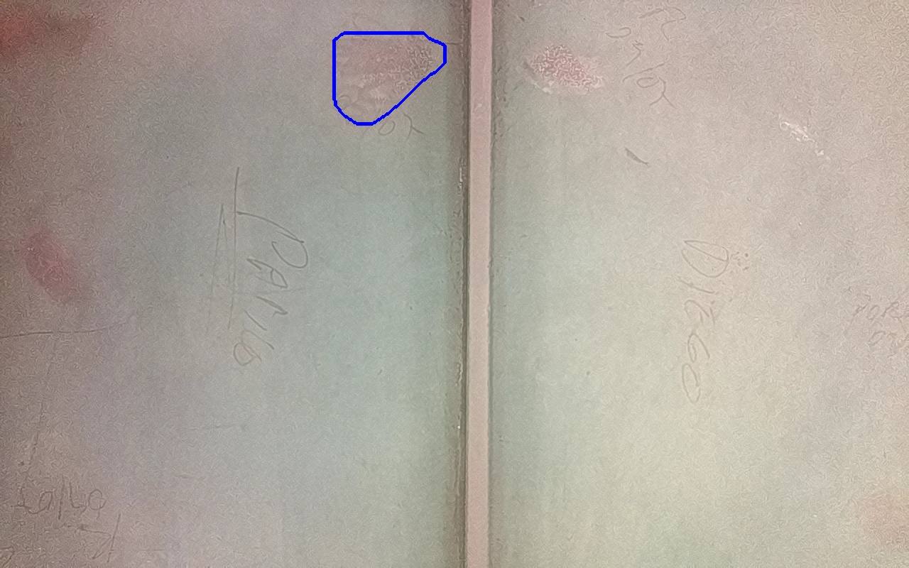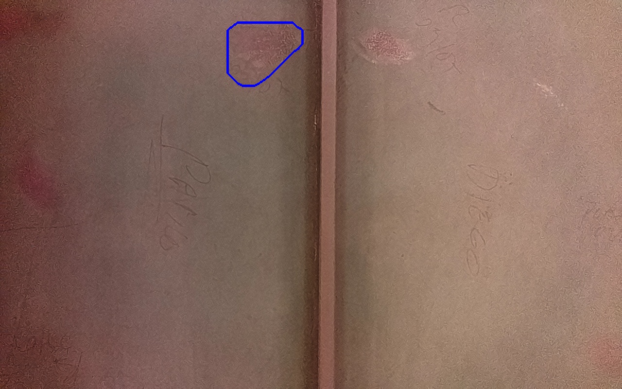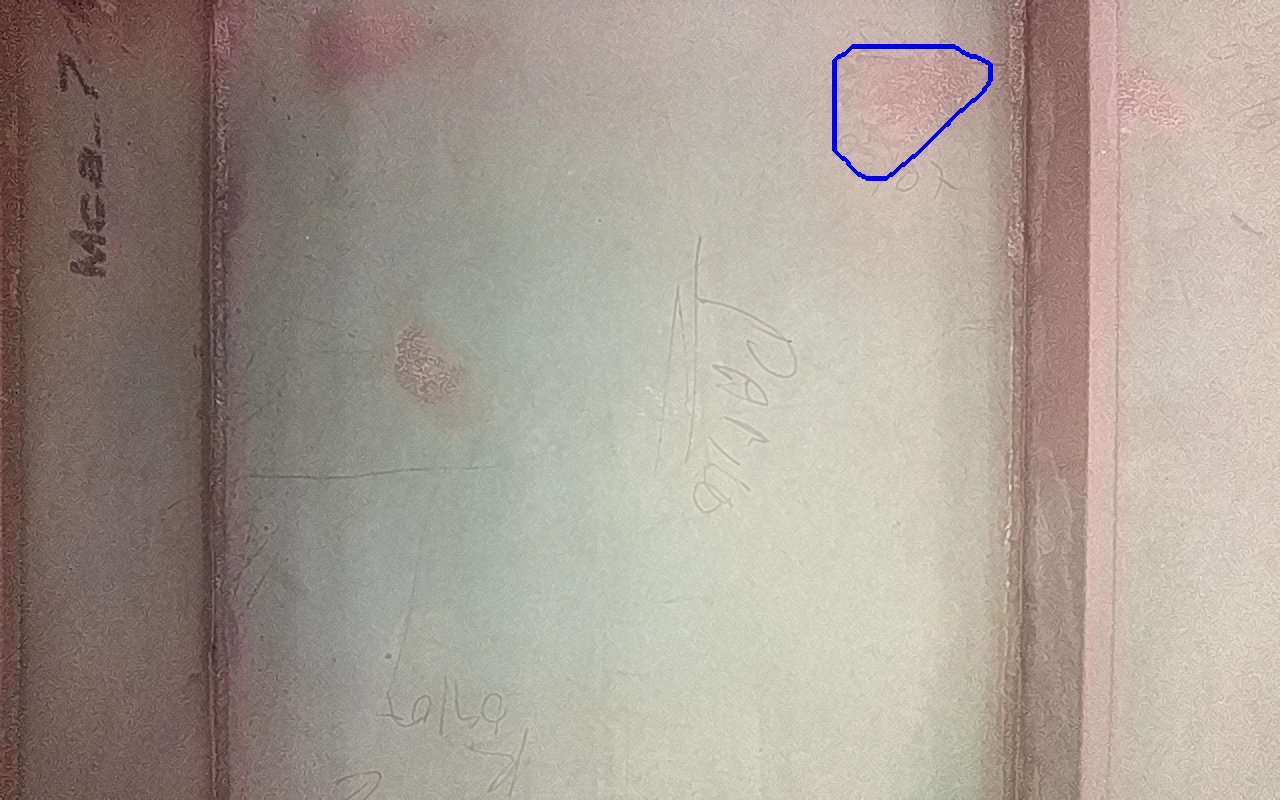 Rayaduras o zonas de metal expuestas con productos de óxido débilmente adherido.