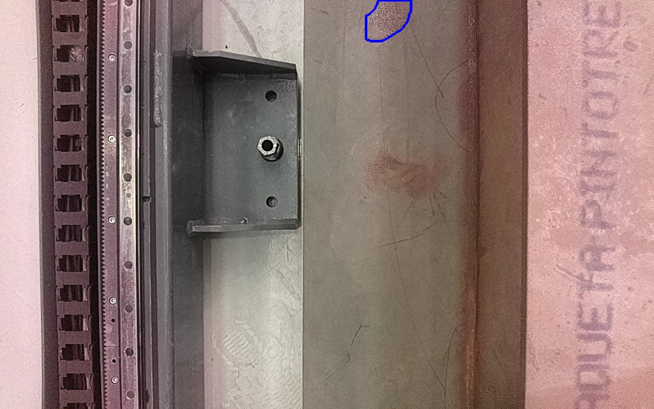Rayaduras o zonas de metal expuestas con productos de óxido débilmente adherido.