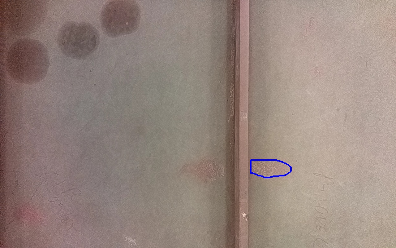 Rayaduras o zonas de metal expuestas con productos de óxido débilmente adherido.
