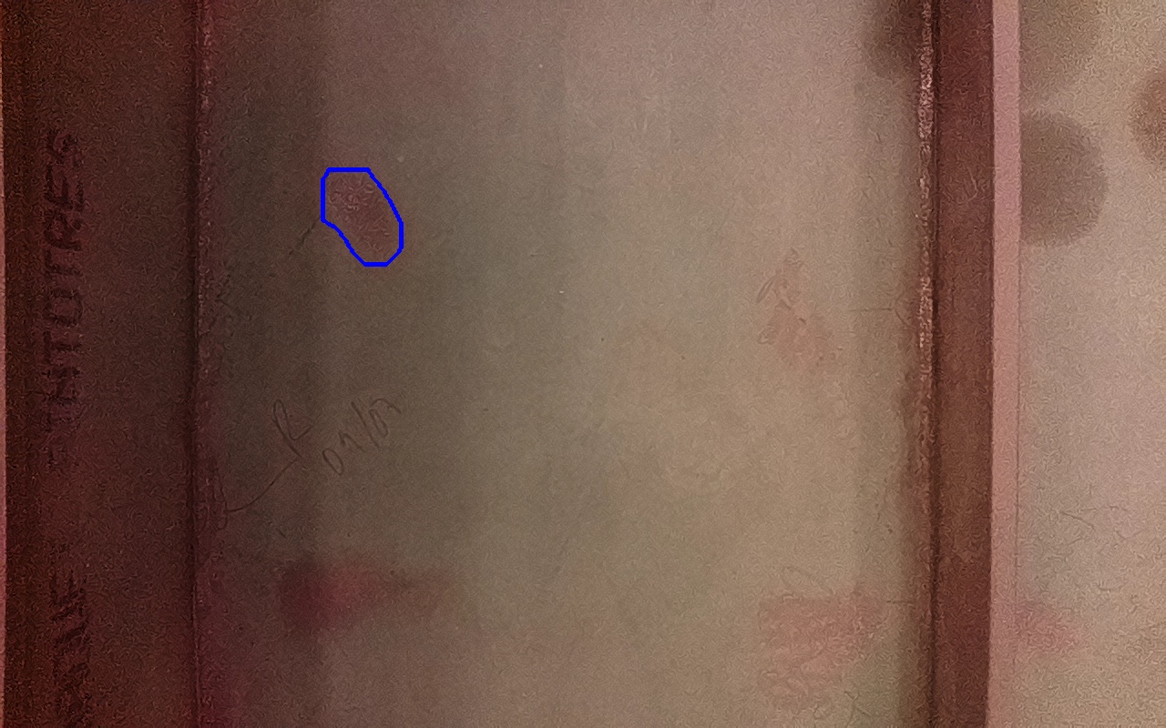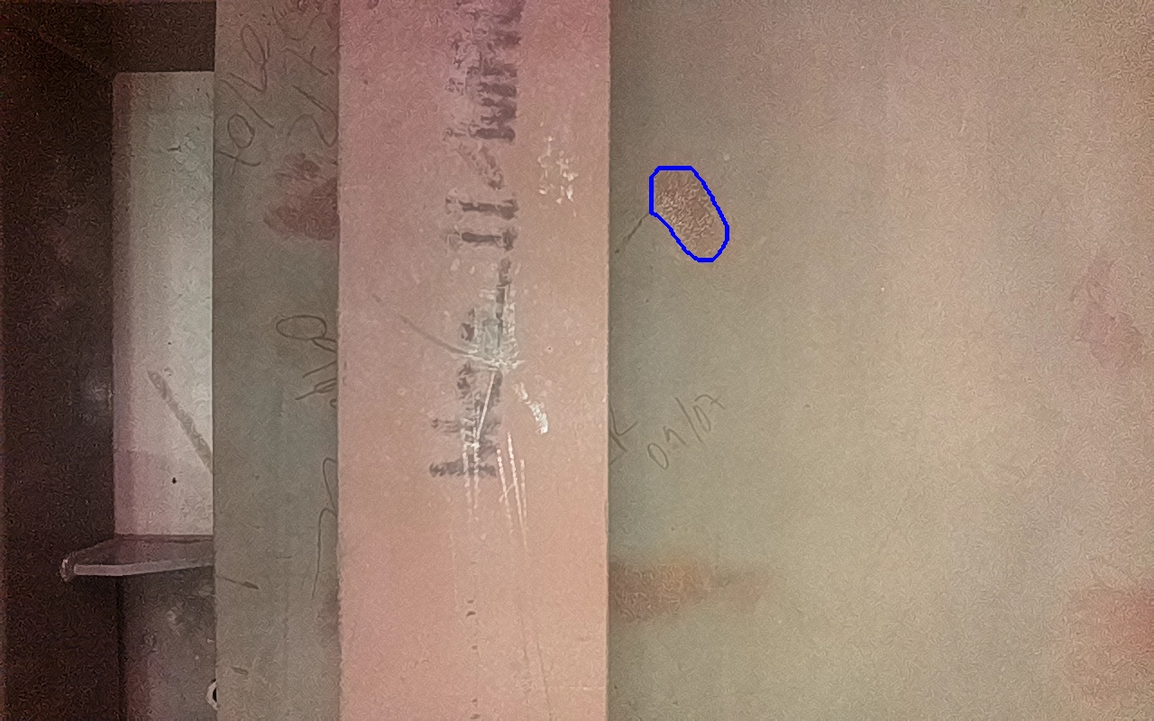 Rayaduras o zonas de metal expuestas con productos de óxido débilmente adherido.