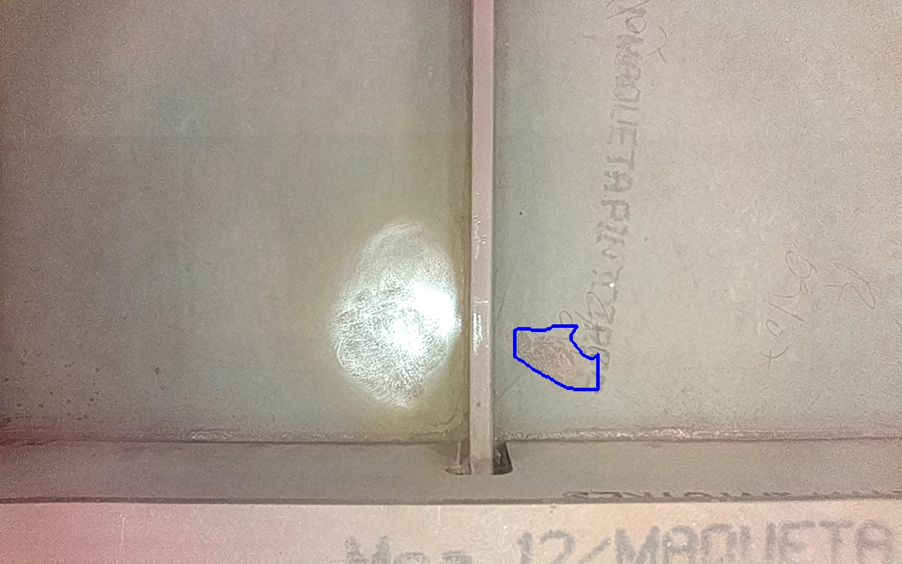 Rayaduras o zonas de metal expuestas con productos de óxido débilmente adherido.