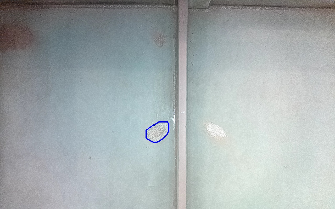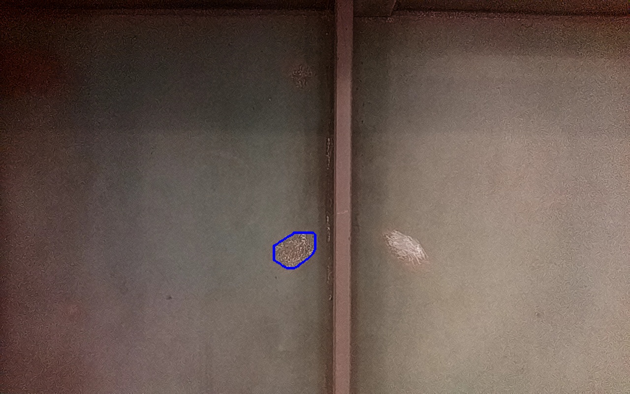 Rayaduras o zonas de metal expuestas con productos de óxido débilmente adherido.