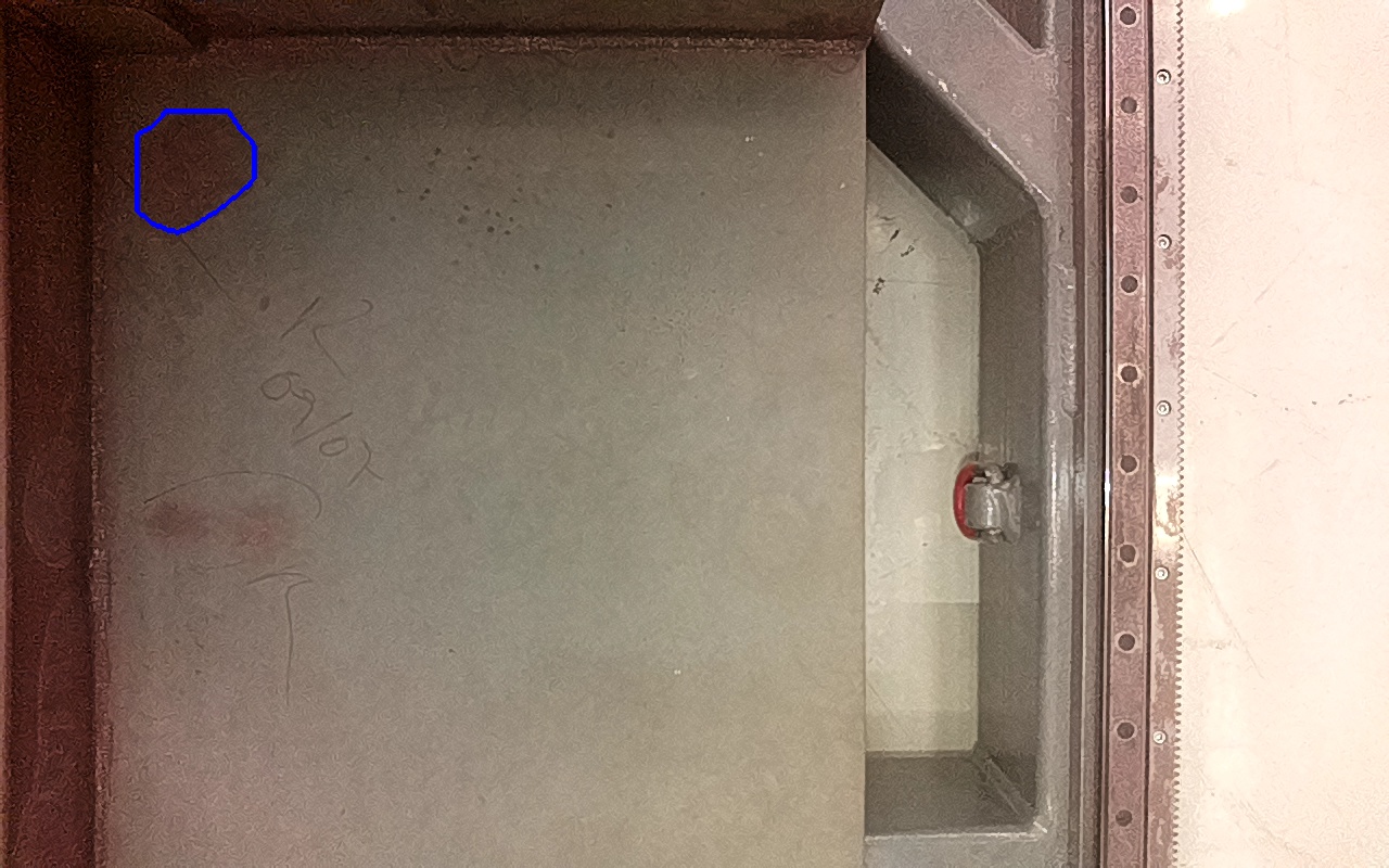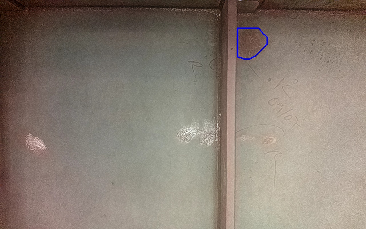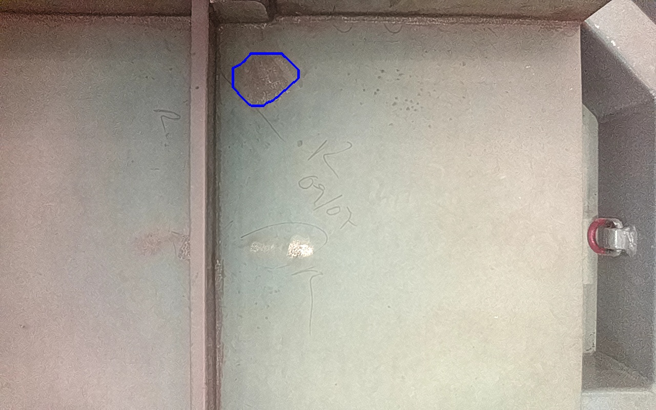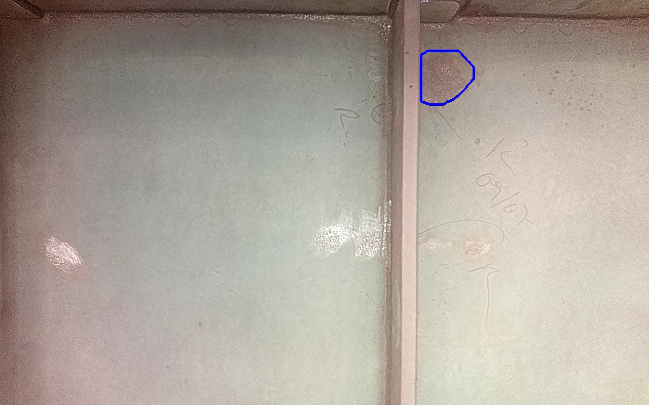 Rayaduras o zonas de metal expuestas con productos de óxido débilmente adherido.