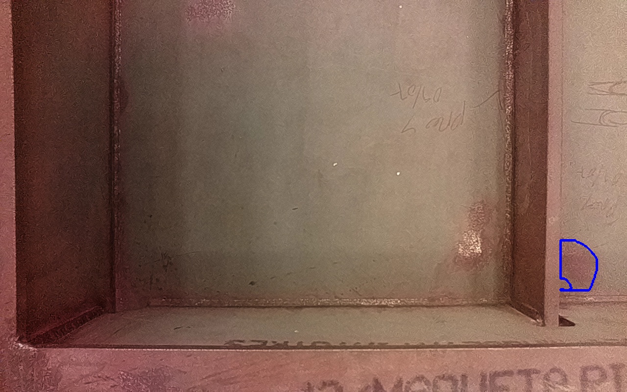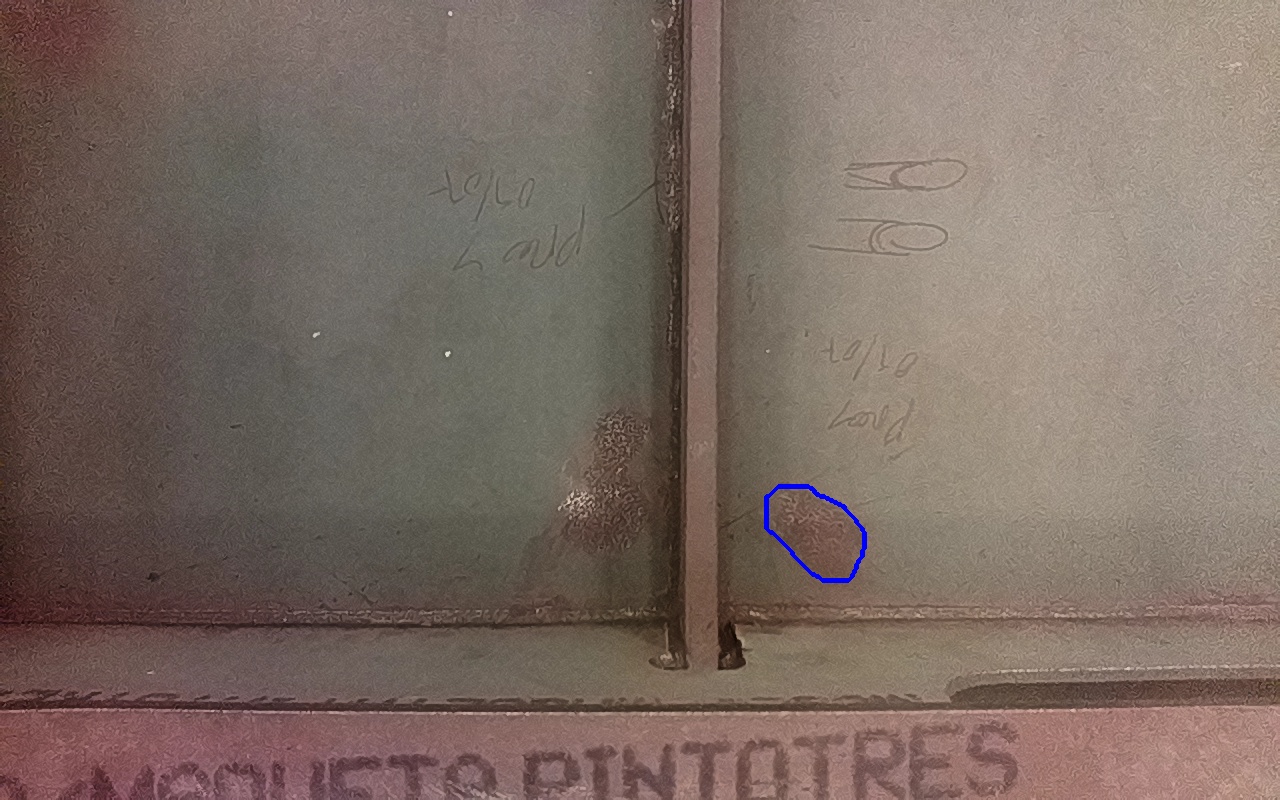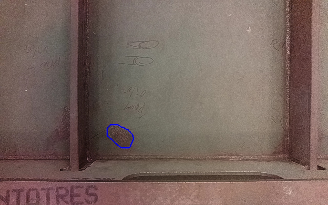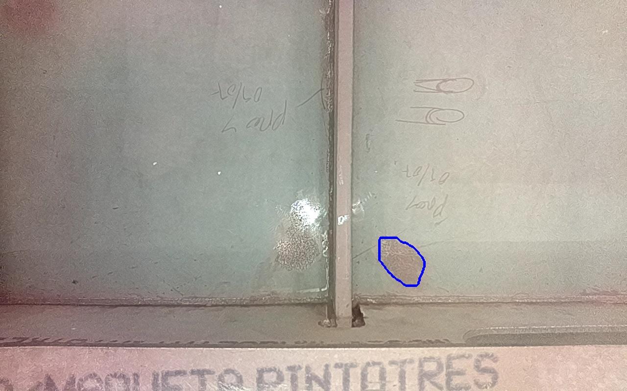 Rayaduras o zonas de metal expuestas con productos de óxido débilmente adherido.