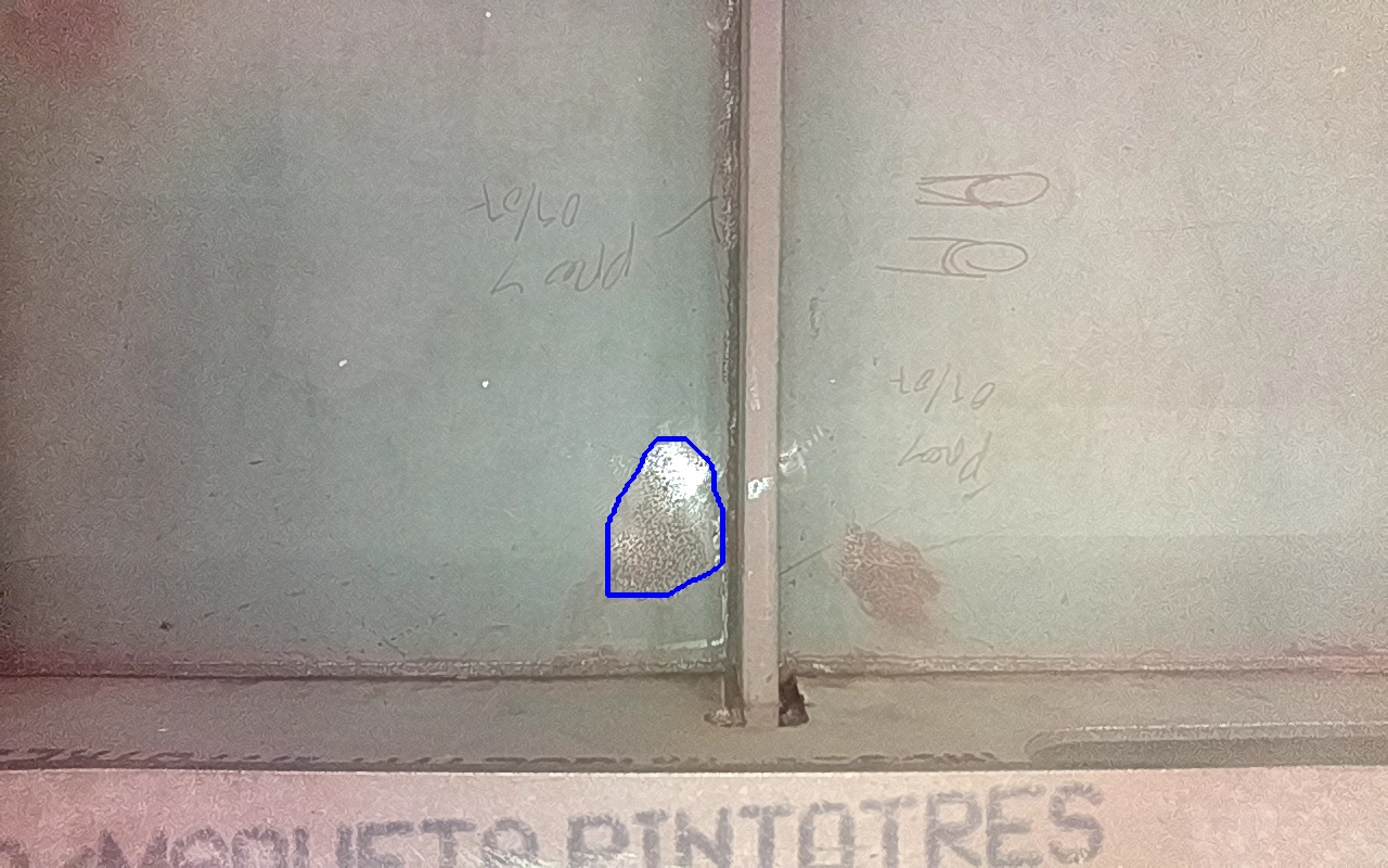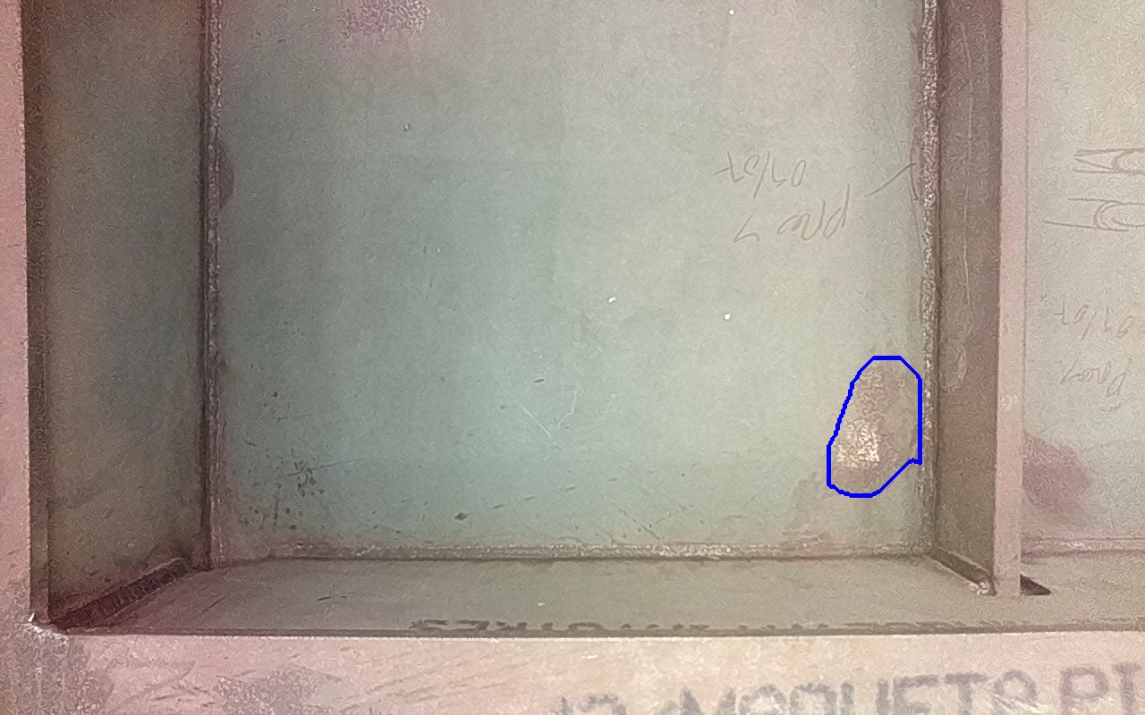 Rayaduras o zonas de metal expuestas con productos de óxido débilmente adherido.
