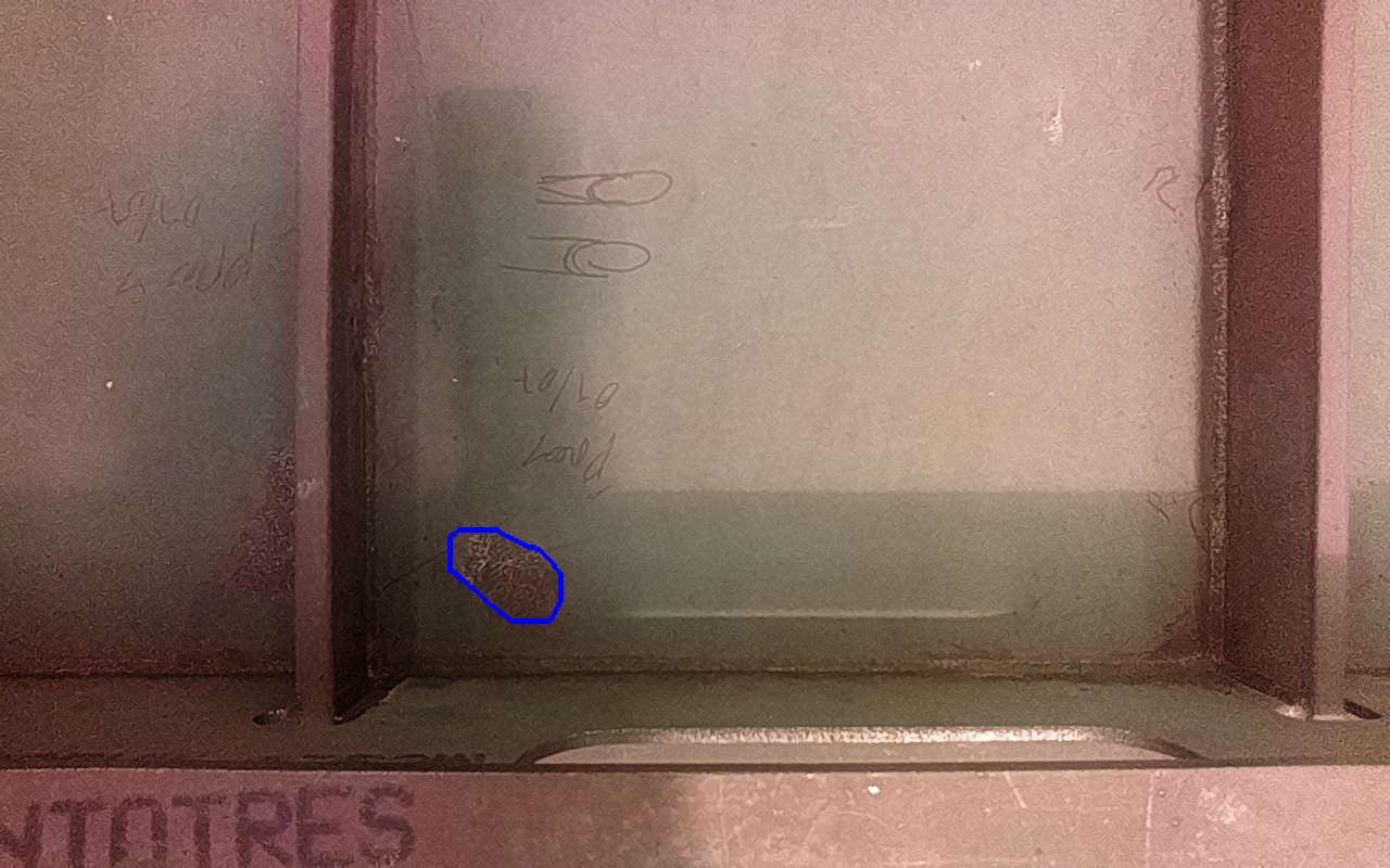 Rayaduras o zonas de metal expuestas con productos de óxido débilmente adherido. |