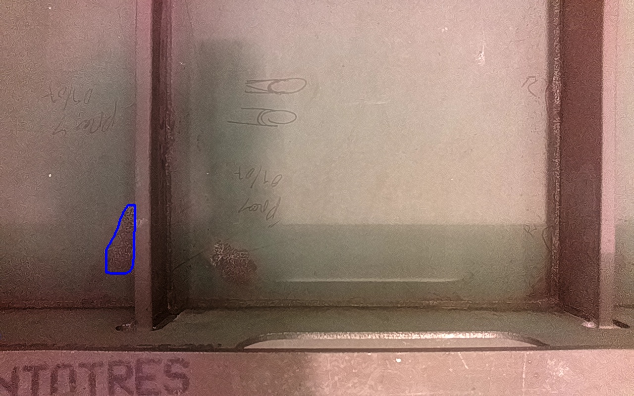 Rayaduras o zonas de metal expuestas con productos de óxido débilmente adherido. |