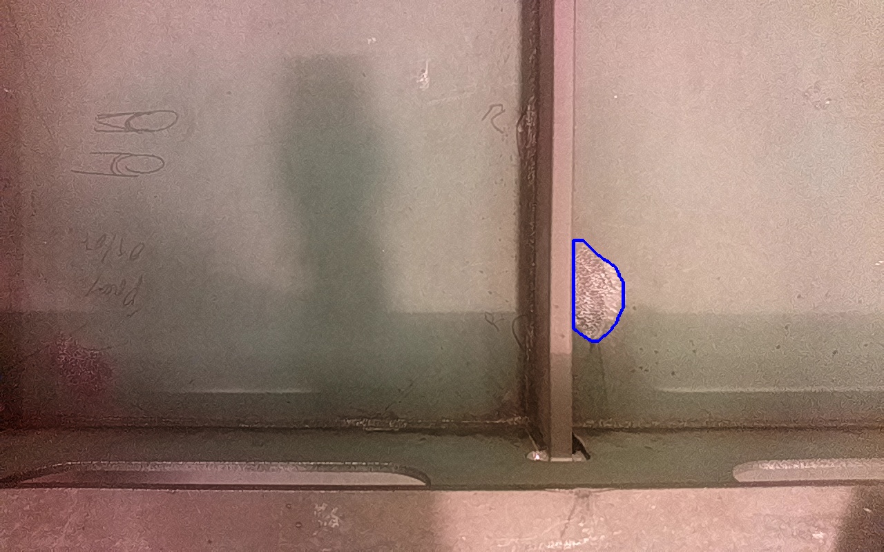 Rayaduras o zonas de metal expuestas con productos de óxido débilmente adherido. |
