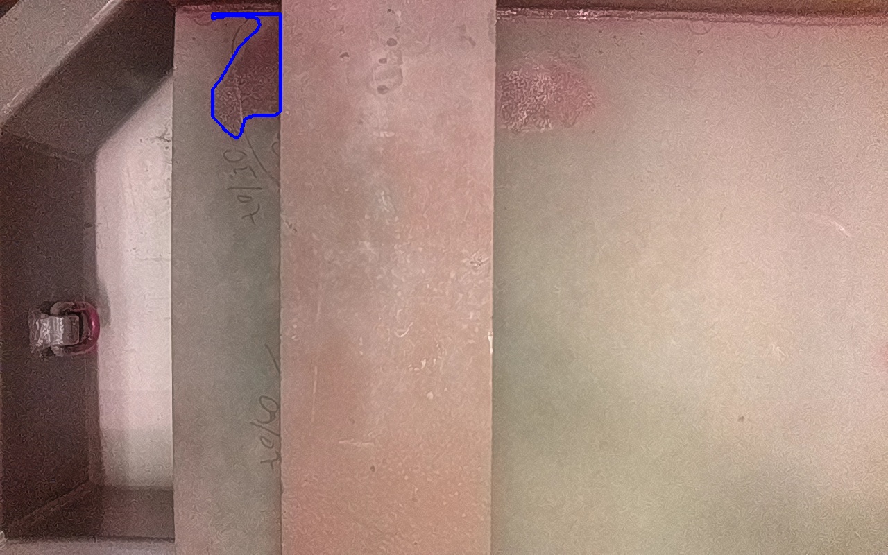 Rayaduras o zonas de metal expuestas con productos de óxido débilmente adherido. |