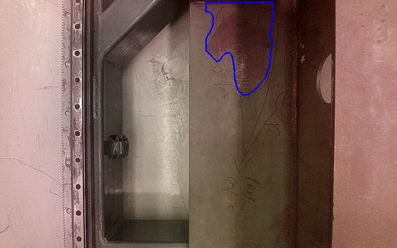 Rayaduras o zonas de metal expuestas con productos de óxido débilmente adherido. |
