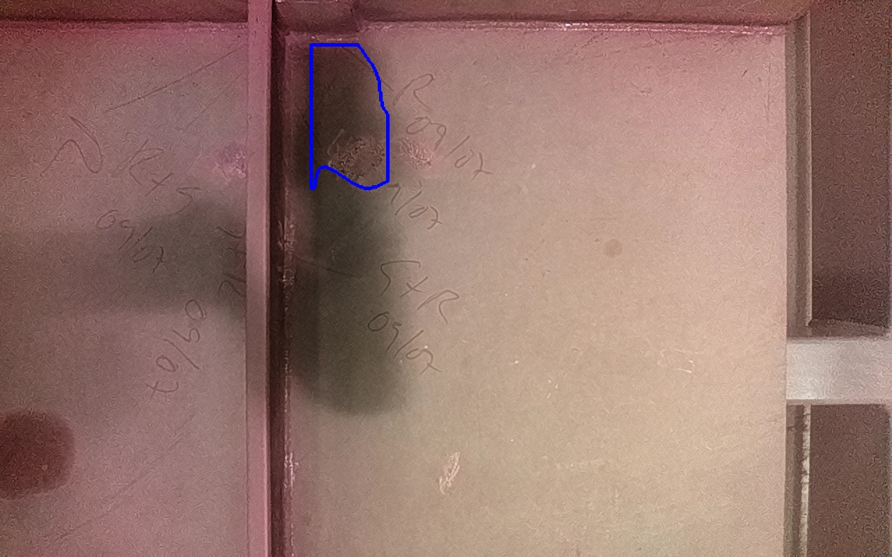 Daños por procesos térmicos donde el RPT se degrada dejando material que no está firmemente adherido. |