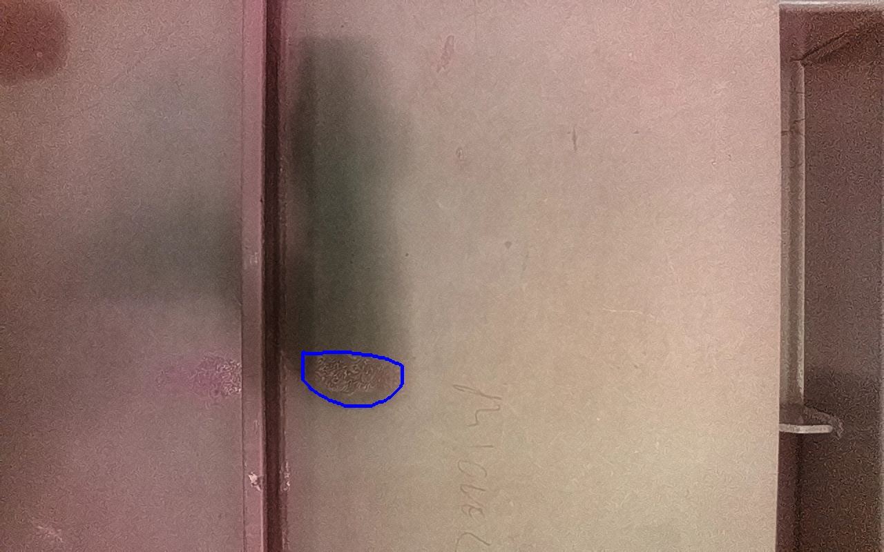 Rayaduras o zonas de metal expuestas con productos de óxido débilmente adherido. |