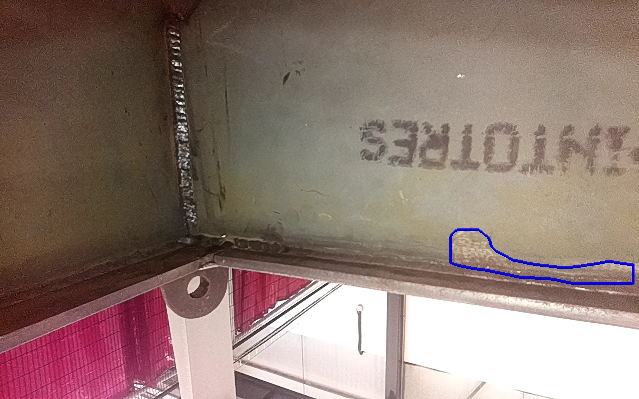 Rayaduras o zonas de metal expuestas con productos de óxido débilmente adherido. |