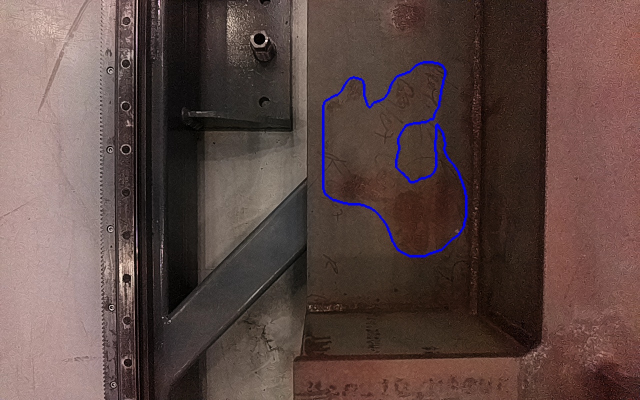 Rayaduras o zonas de metal expuestas con productos de óxido débilmente adherido. |