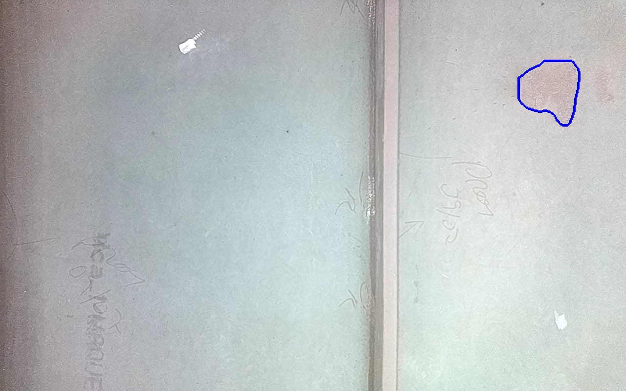 Rayaduras o zonas de metal expuestas con productos de óxido débilmente adherido. |