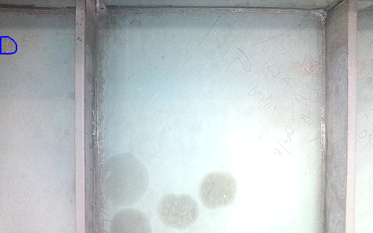 Rayaduras o zonas de metal expuestas con productos de óxido débilmente adherido. |