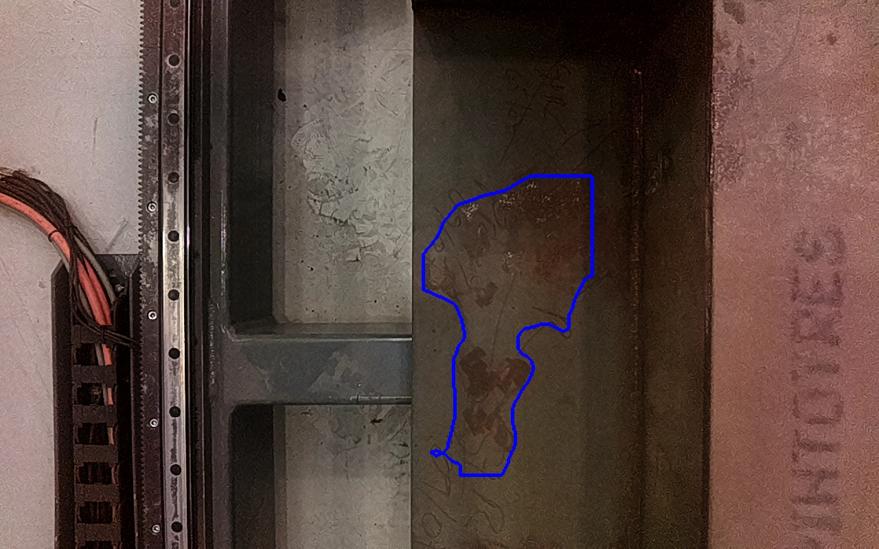 Rayaduras o zonas de metal expuestas con productos de óxido débilmente adherido. |