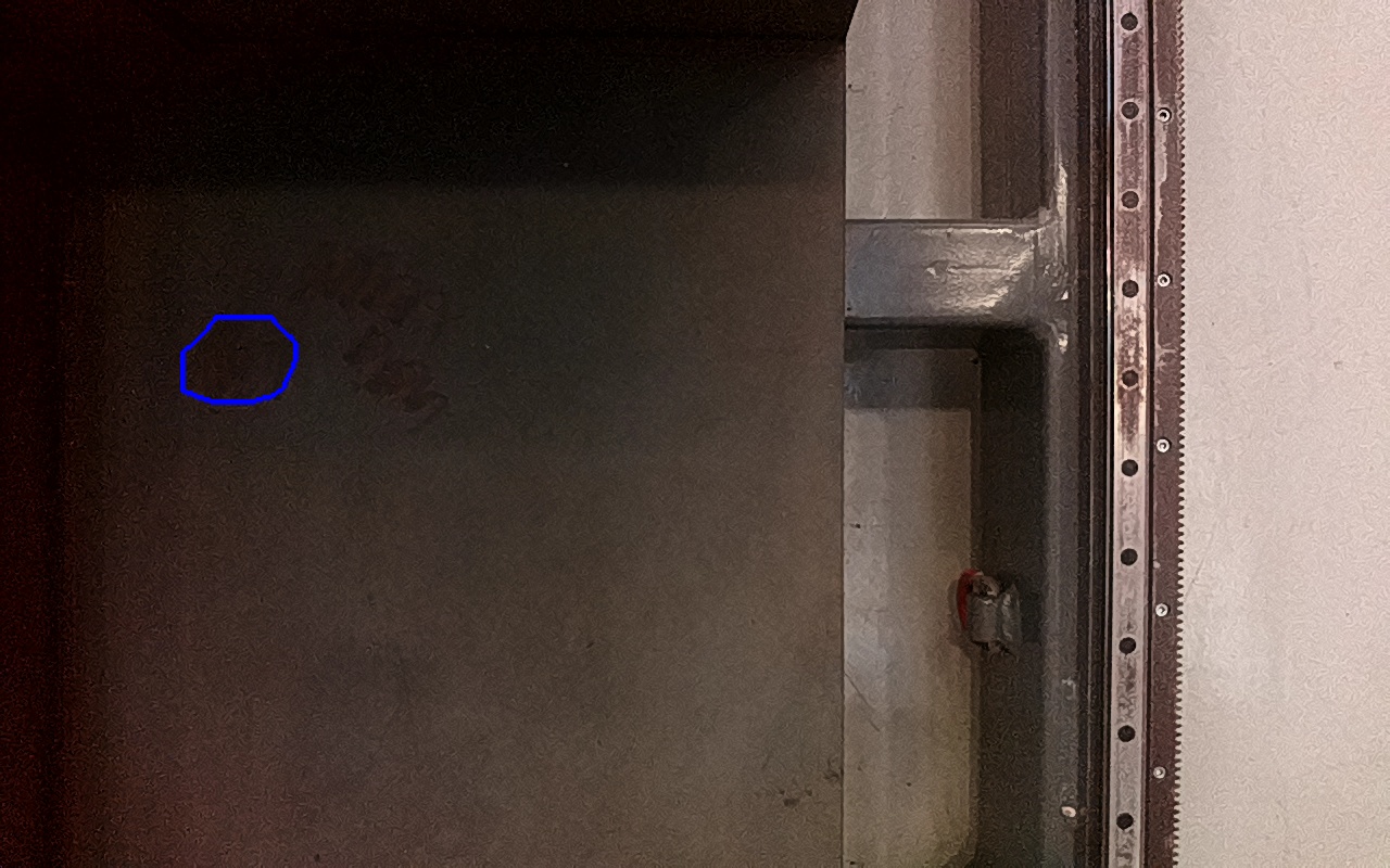 Rayaduras o zonas de metal expuestas con productos de óxido débilmente adherido. |