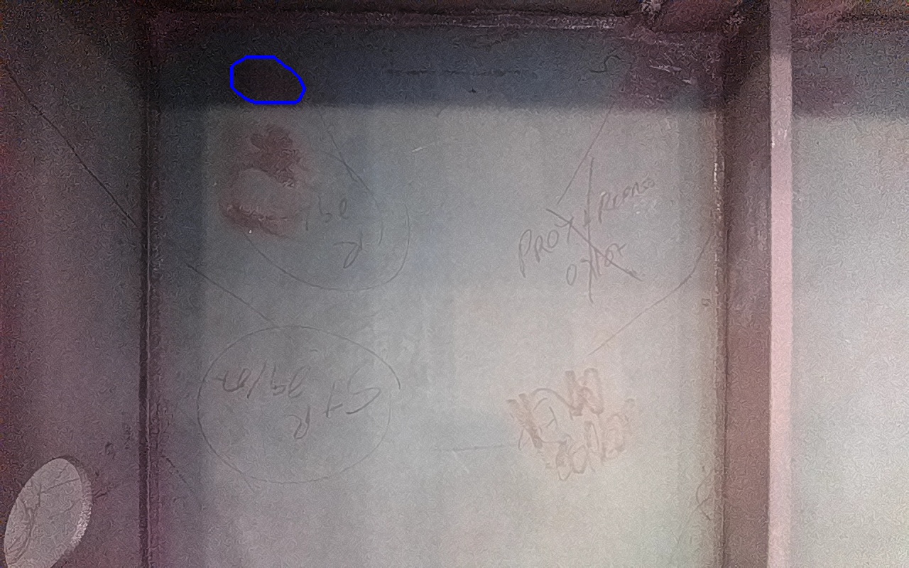 Rayaduras o zonas de metal expuestas con productos de óxido débilmente adherido. |