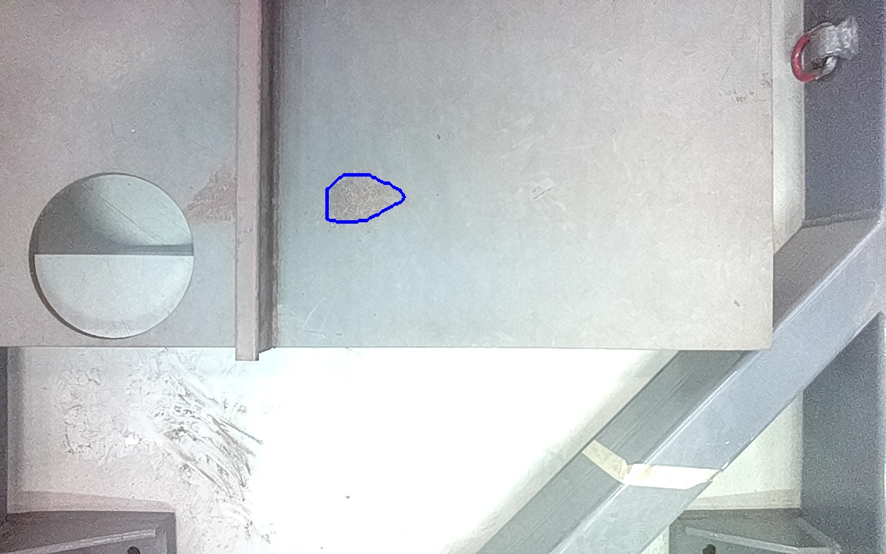 Rayaduras o zonas de metal expuestas con productos de óxido débilmente adherido.