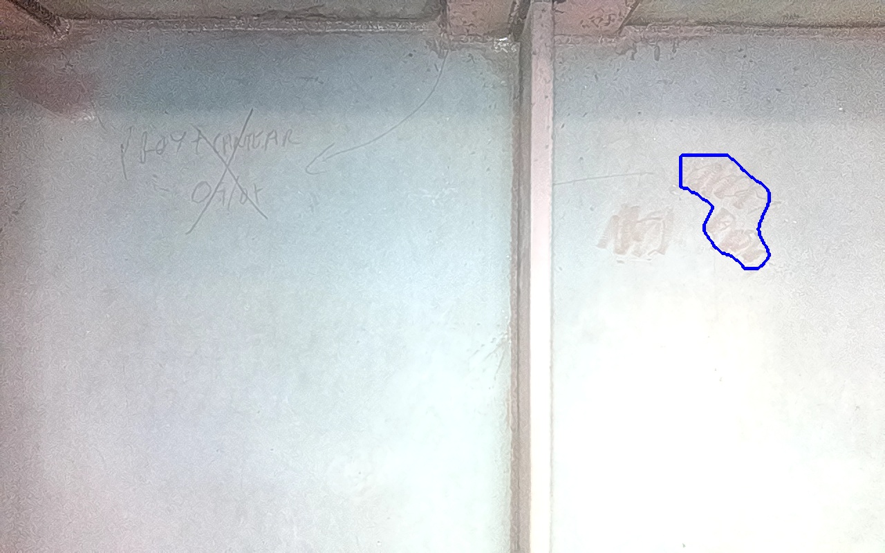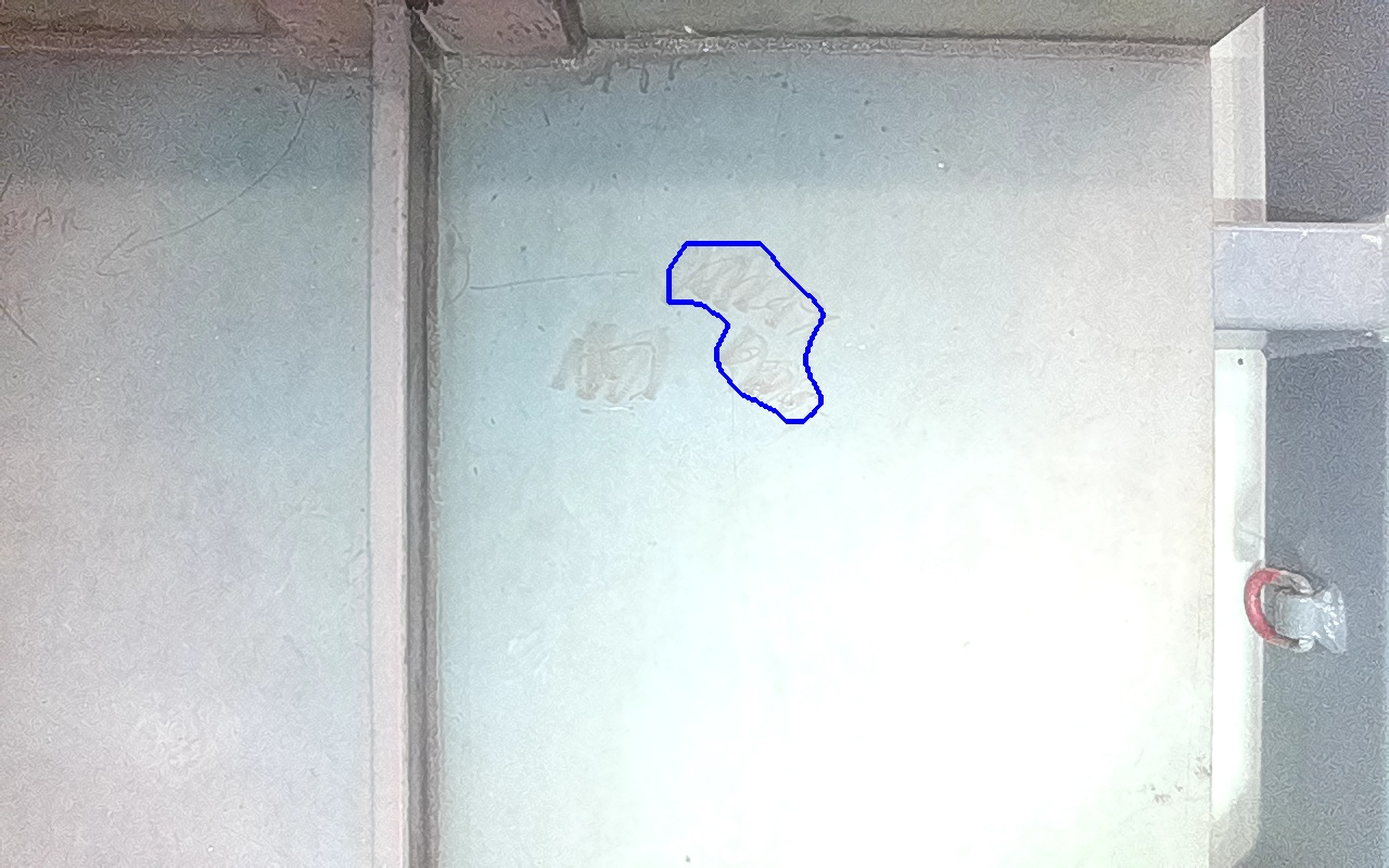 Rayaduras o zonas de metal expuestas con productos de óxido débilmente adherido.