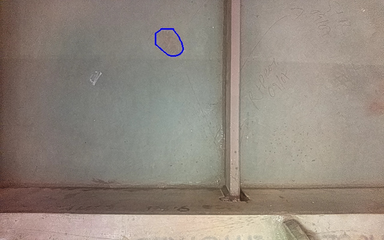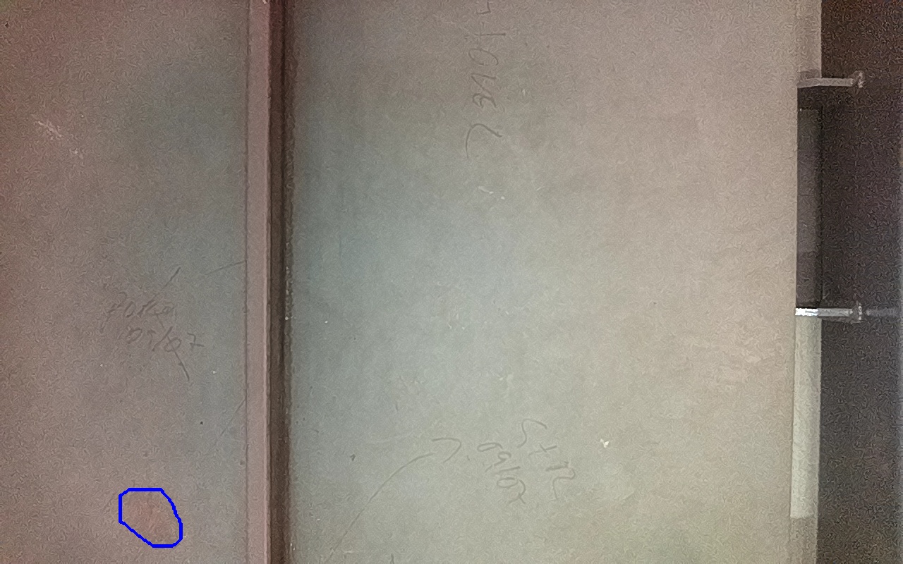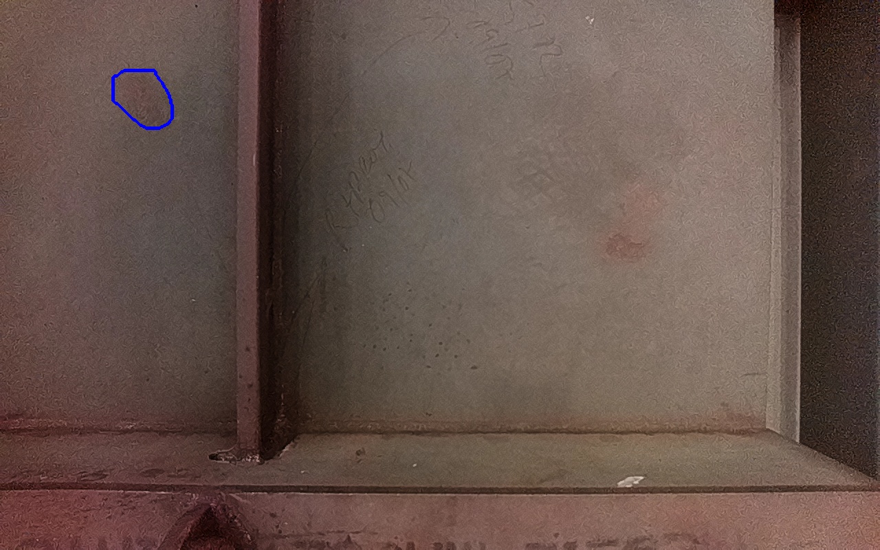 Rayaduras o zonas de metal expuestas con productos de óxido débilmente adherido.