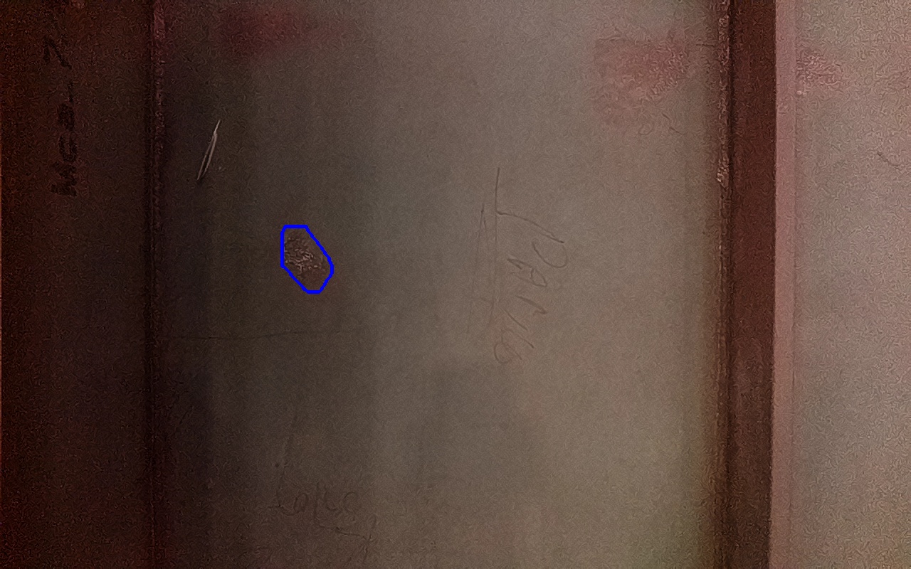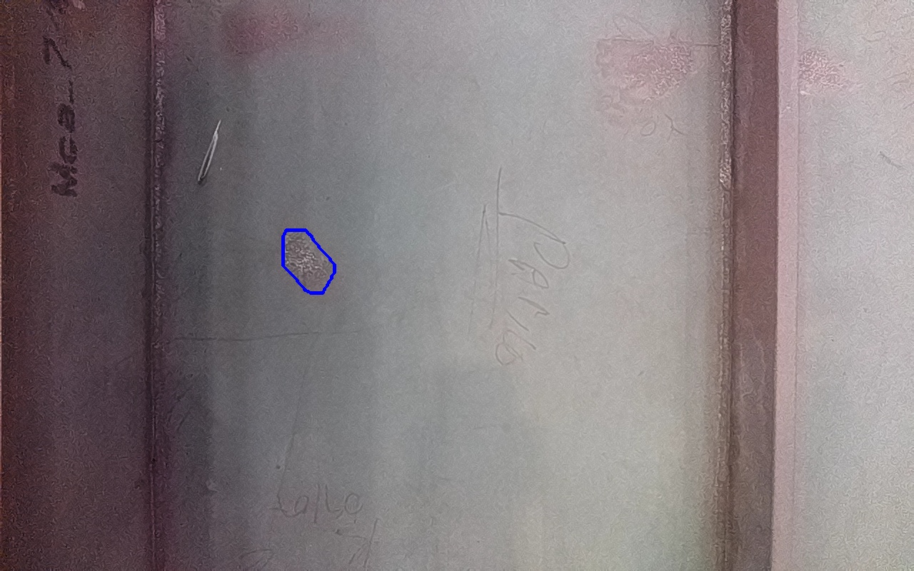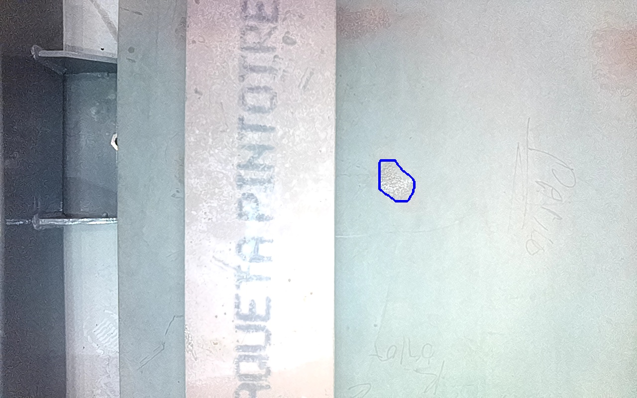 Rayaduras o zonas de metal expuestas con productos de óxido débilmente adherido.