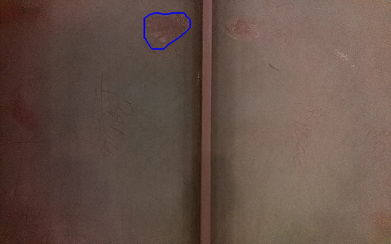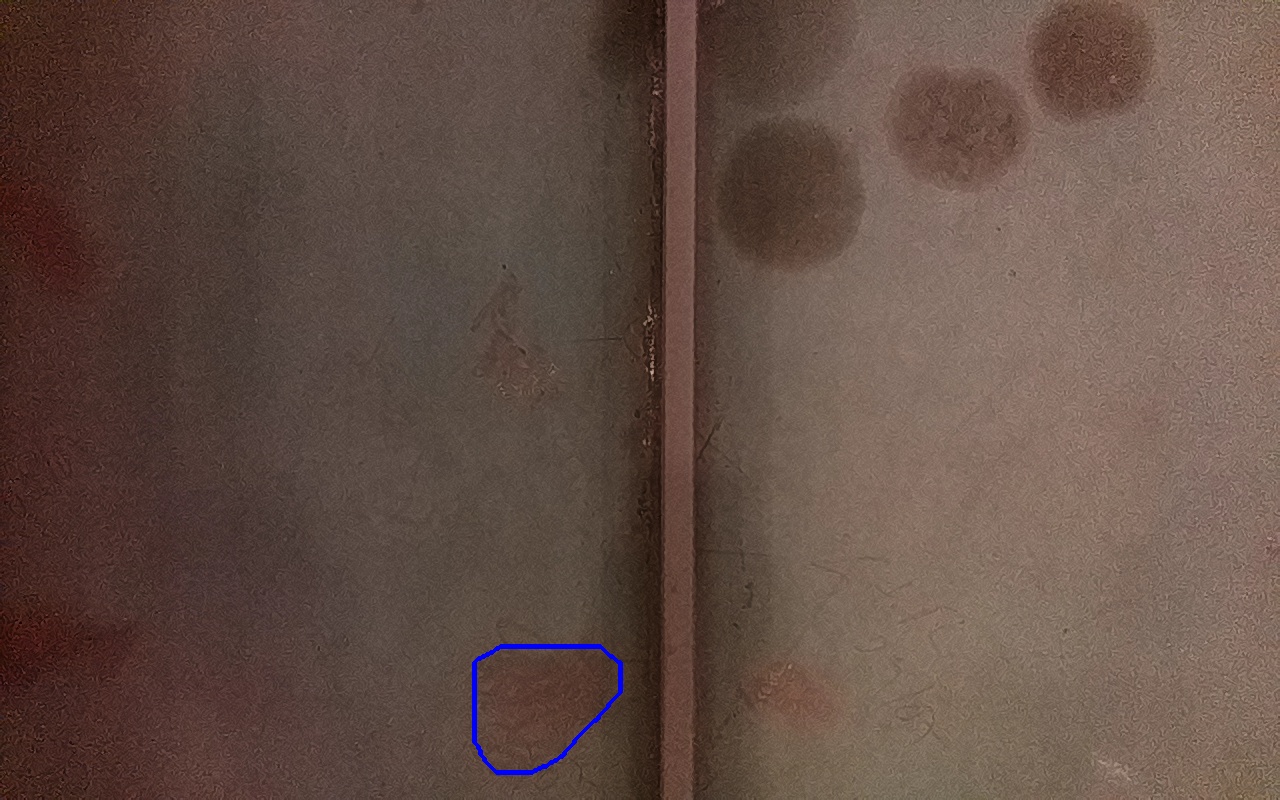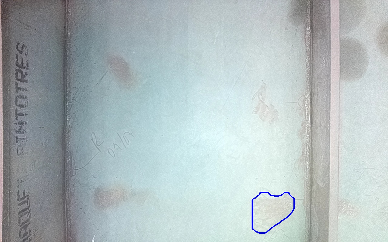 Rayaduras o zonas de metal expuestas con productos de óxido débilmente adherido.
