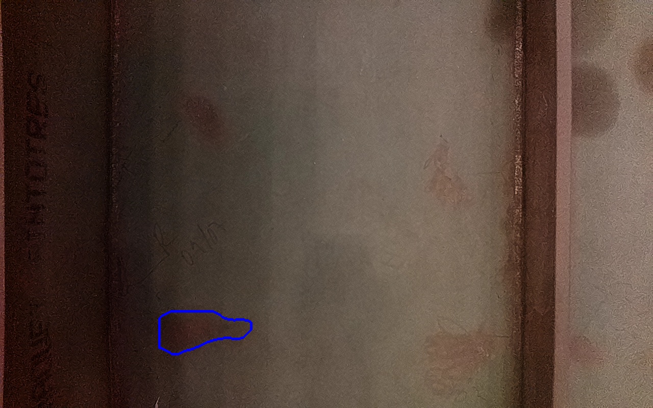 Rayaduras o zonas de metal expuestas con productos de óxido débilmente adherido.